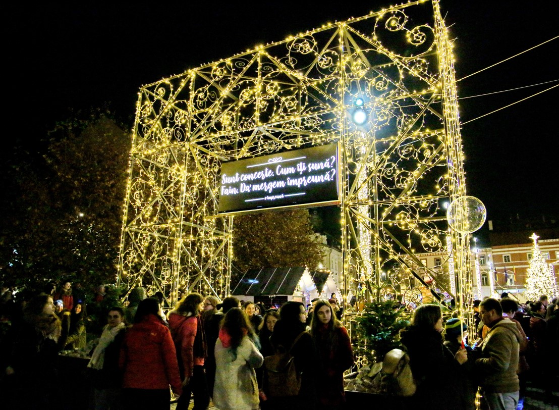 Chiar dacă mai sunt 31 de zile până la Crăciun şi nici nu a nins încă, magia Crăciunului a început să se simtă la Cluj-Napoca datorită Târgului de Crăciun, care a început oficial vineri, 23 noiembrie. La ora 19 au fost aprinse luminiţele care îmbodobesc Piaţa Unirii şi s-a dat startul ascultării de colinde în mijlocul oraşului.