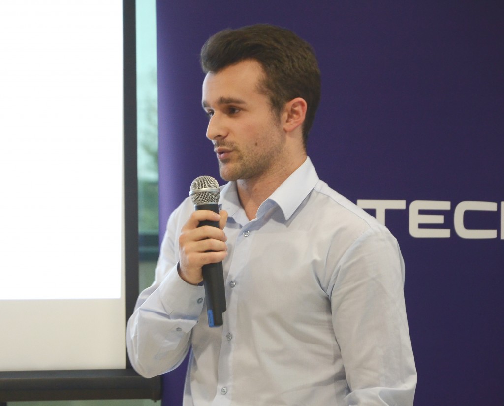 „Noi ne-am format echipa, am primit un mentor din partea echipei Fortech și apoi, după o sesiune de brainstorming, am găsit și ideea de care să ne ocupăm. Am fost cinci persoane în echipă și cu mentorul șase. Din păcate a trebuit să renunțam la unul dintre membrii echipei pentru că nu era chiar așa de focusat pe zona aceasta și nici nu era chiar așa de pasionat de IT. Persoanele cu care am lucrat sunt niște copii deosebiți, foarte talentați și sunt sigur că vom avea împreună un viitoar extraodinar în zona de IT. Aplicația noastră se numește Bus Tracker. Noi am vrut să ușurăm modul în care persoanele din Cluj, dar nu numai, pot să folosească liniile de transport în comun ale CTP-ului. Ne-am propus să facem asta printr-o aplicație pe care am dezvoltat-o pentru sistemul de operare Android, în Android Studio, ca mediu de programare. Am folosit harta orașului nostru pe care am adăugat coordonatele câtorva stații de autobuz și a câtorva linii. Utilizatorul își pornește aplicația, este localizat prin sistemul Android, după care introduce adresa unde dorește să ajungă. Aplicația noastră îi determină ruta pe baza unui algoritm, astfel încât acesta să ajungă cât mai repede la destinație”, povestește Andrei.