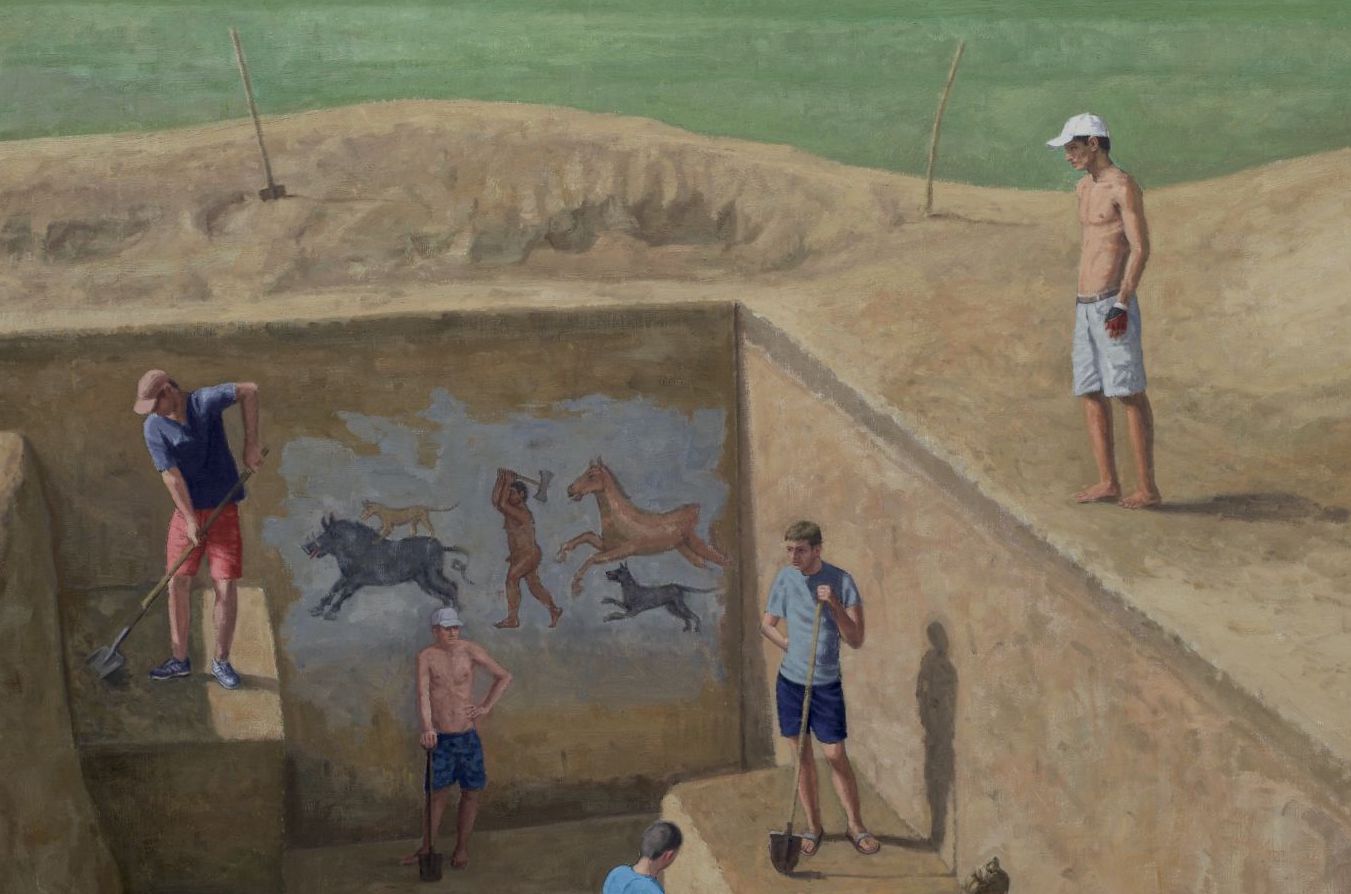 Dacă pictura din pictura apare sau se întoarce în praf depinde în întregime de punctele de referință mnemoistorice ale privitorului. „Mormântul tracic (Thracian Tomb)”, 2020, este o lucrare plasată în interiorul unei săpături arheologice a unei opere de artă destinată inițial scopurilor funerare, deoarece este dezvăluită în serviciul unei ideologii noi.
