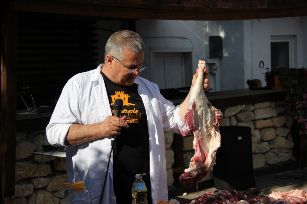 Cei doi au avut un dialog savuros care a încântat publicul timp de două ore, până au fost gata preparatele din carne de  miel, de porc, de vită, viţel cu legume, stropit cu suc de portocale și un sos special.