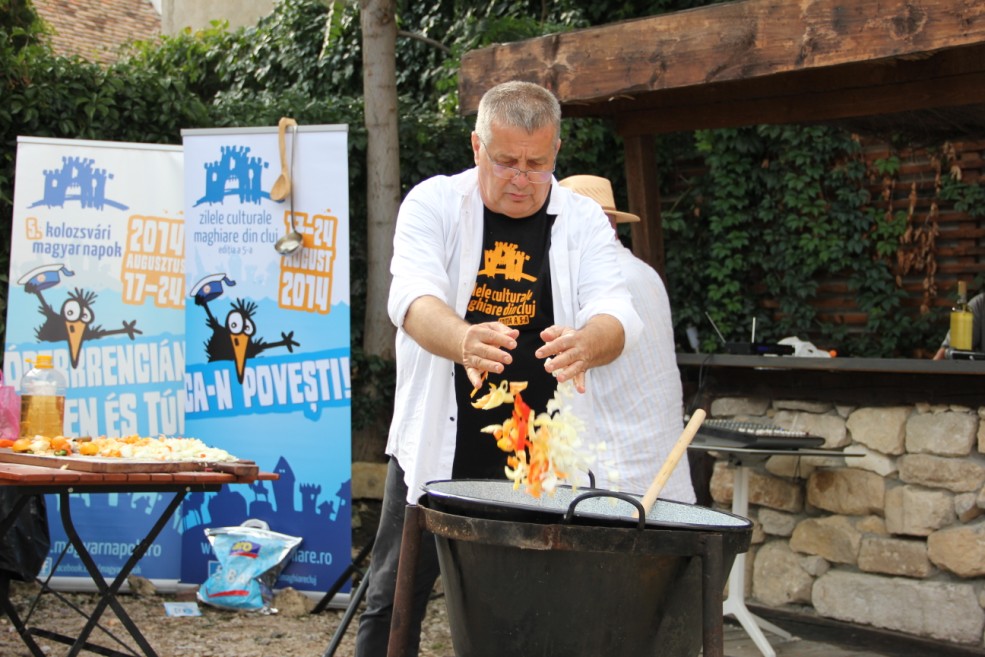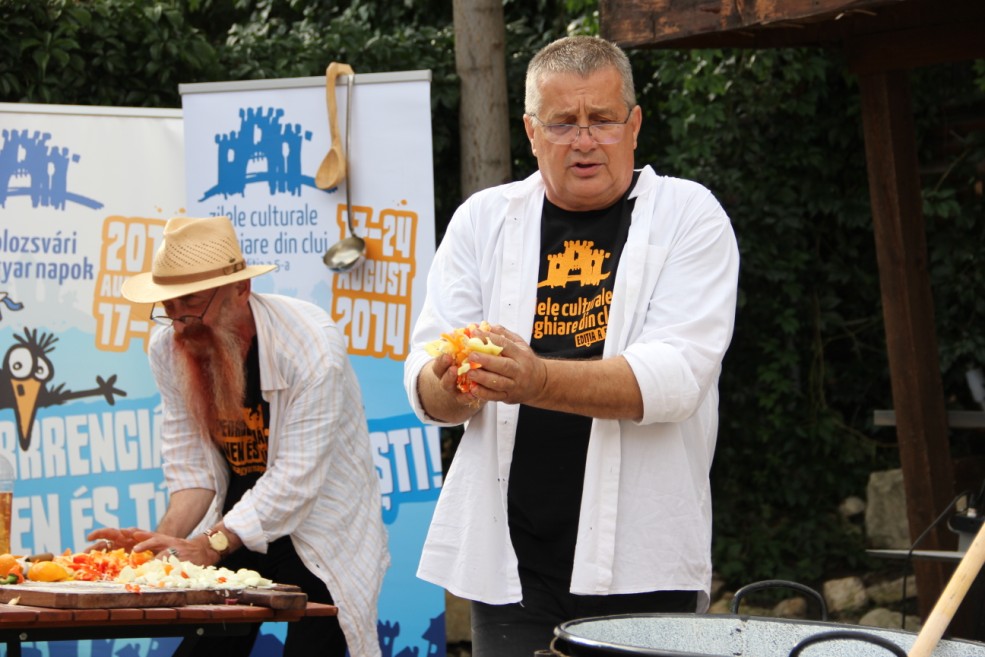 Cunoscutul poet Mircea Dinescu a oferit un show culinar și literar la Zilele Culturale Maghiare alături de  lutierul maghiar Marcus Janos Barbarossa în cadrul evenimentului  “Joaca de-a gătitul şi joaca de-a literatura”. Zeci de clujeni au umplut terasa Casei TIFF pentru a-i urmări.