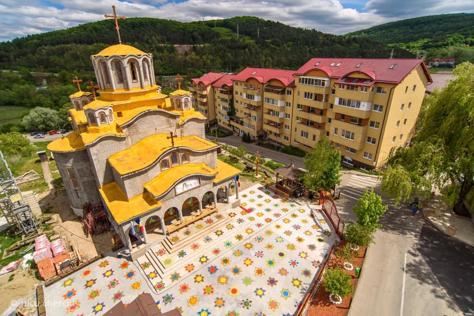 Preotul Ovidiu Ciprian Marțiș a amenajat curtea Parohiei Ortodoxe „Sfântul Ioan Iacob Hozevitul”, Floresti, Cluj, pictând flori colorate, la distanțe de 1,5 meri, pe toată suprafașa curții bisericii.