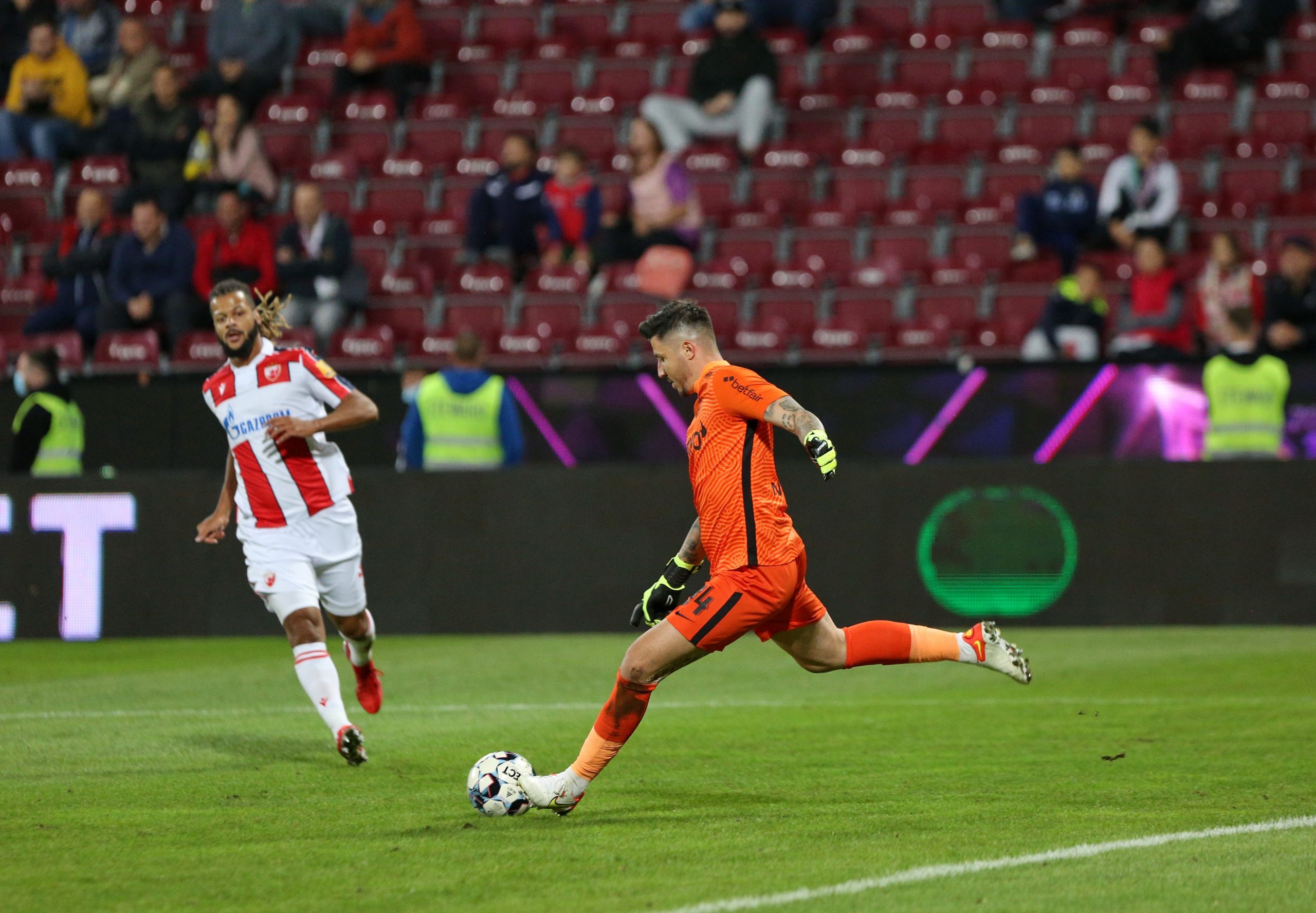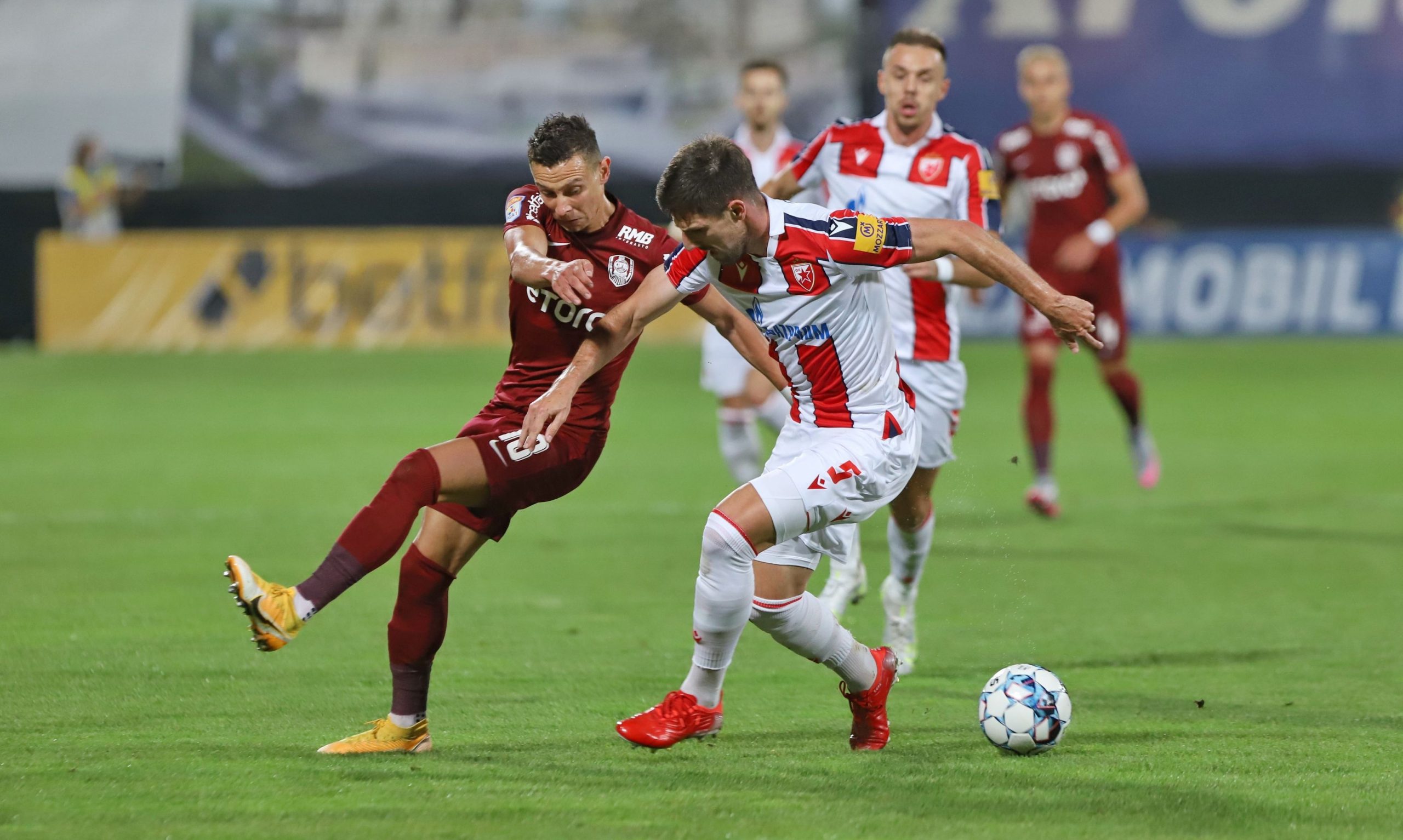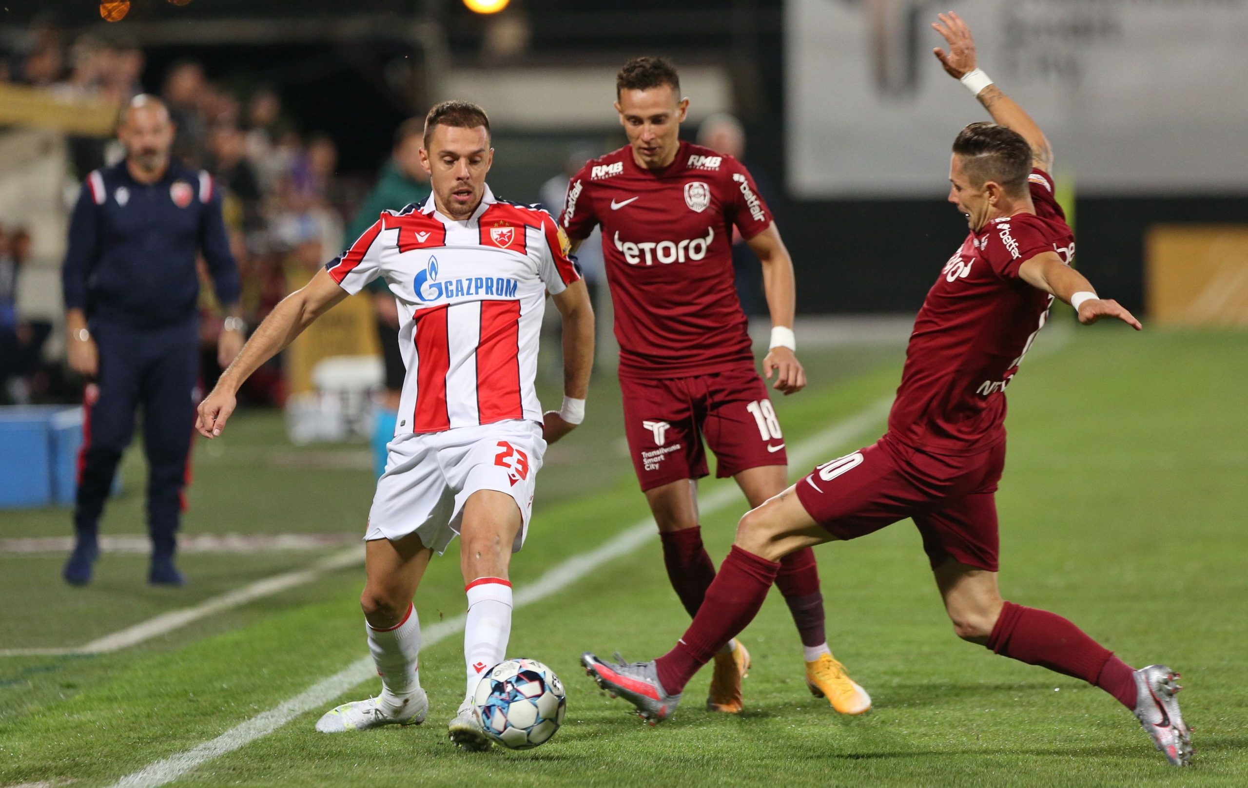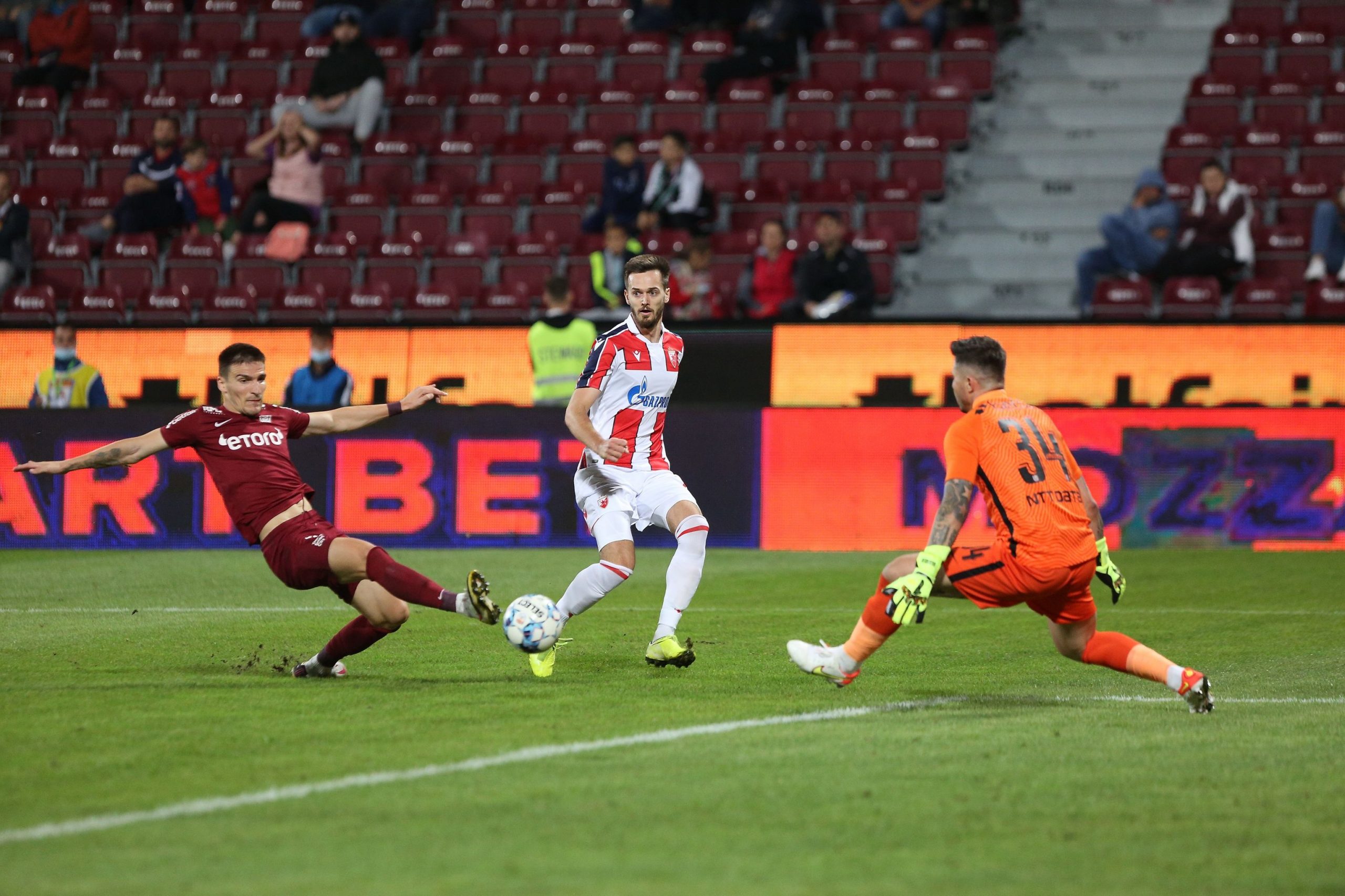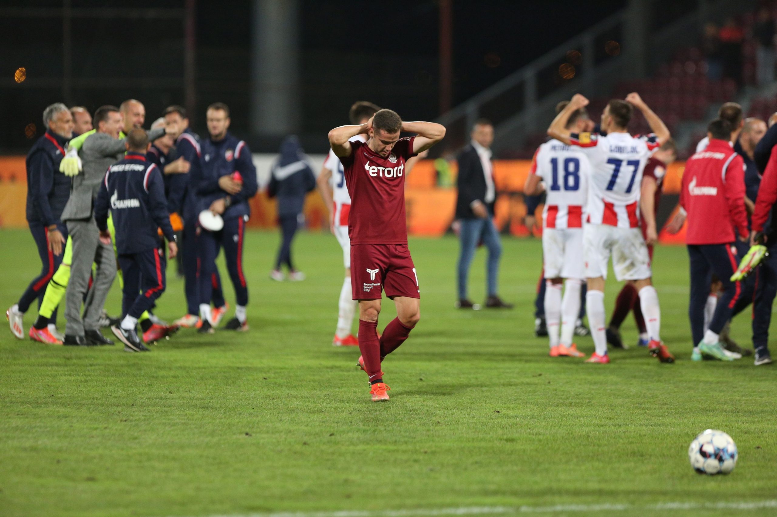 CFR Cluj s-a văzut condusă aseară pe tabela de marcaj încă din min.4, după ce sârbii au beneficiat de un penalty ușor acordat de centralul partidei. Debeljuh a restabilit egalitatea până la pauză, însă Bălgrădean, intrat la pauză în locul lui Arlauskis, a gafat incredibil, oferind mingea pe tavă celor de la Steaua Roșie, care s-au desprins pe tabela de marcaj. Deac a avut ocazia să egaleze din nou pentru CFR, însă a ratat lamentabil o lovitură de la 11. Pe finalul meciului, Rodriguez este și el eliminat de pe teren, după ce a adunat două cartonașe galbene în doar 9 minute.