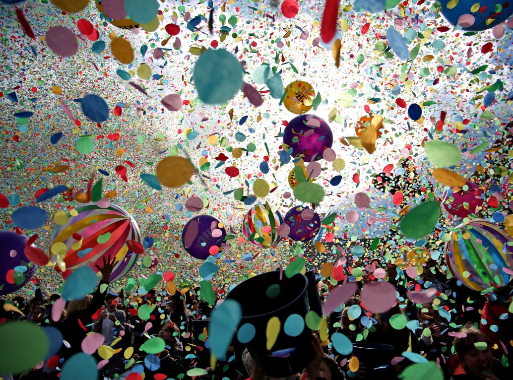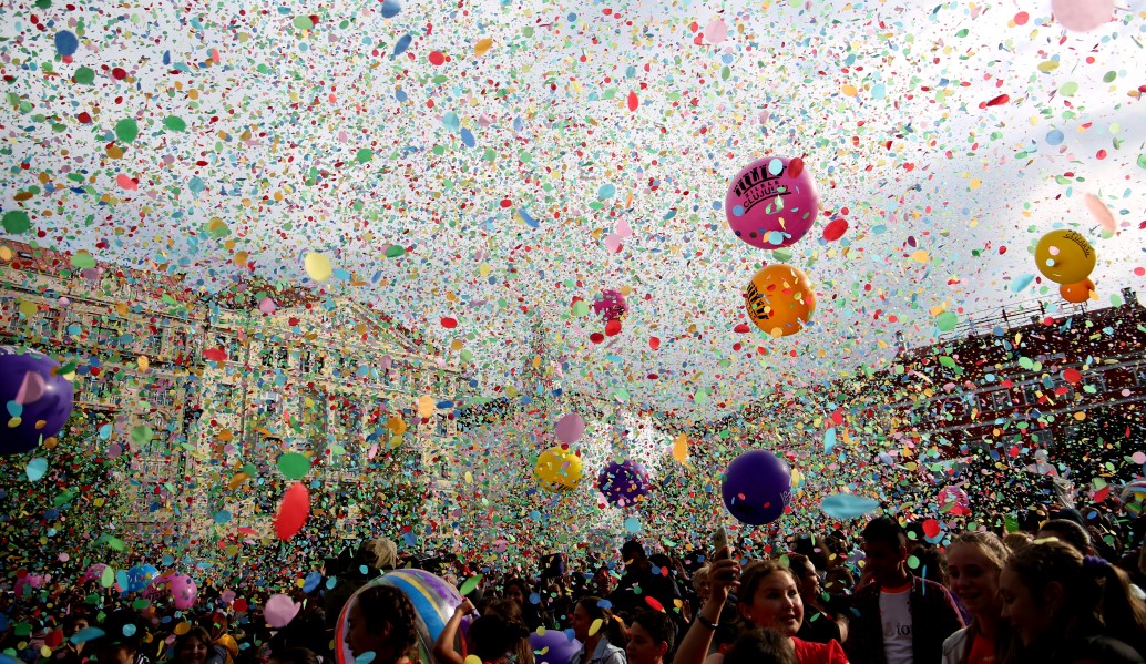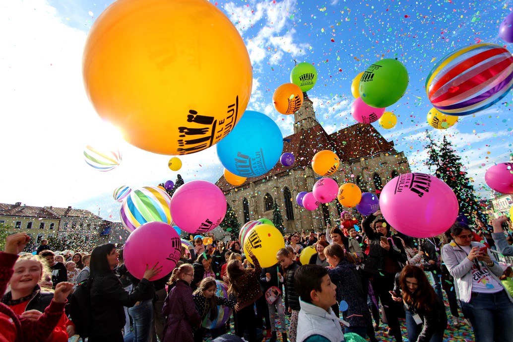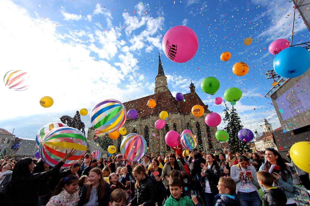 Un moment emoționant, la care a ieșit în cele din urmă și soarele a fost lansarea confettiului, care a umplut de culoare și voie bună întreg centrul orașului.