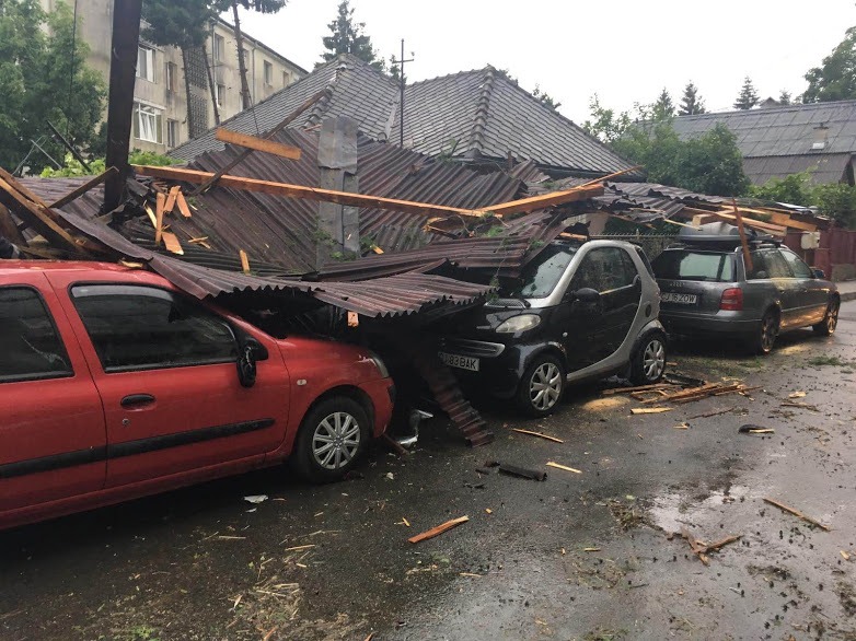 – Str. Cloşca – tablă smulsă de pe acoperiş;