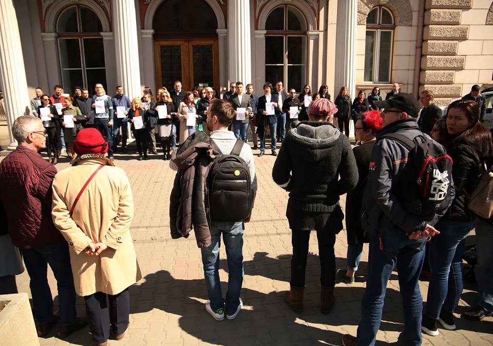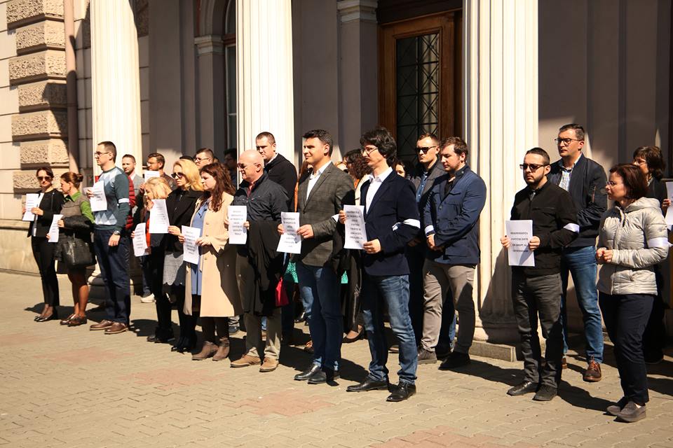 Magistrații clujeni protestează de cinci săptămâni în fața Palatului de Justiție în semn de protest față de adoptarea OUG7 pe Justiție. Ei cer retragerea ordonanței, precum și a tuturor celelalte modificări legislative ”menite să subordoneze politic justiția”.