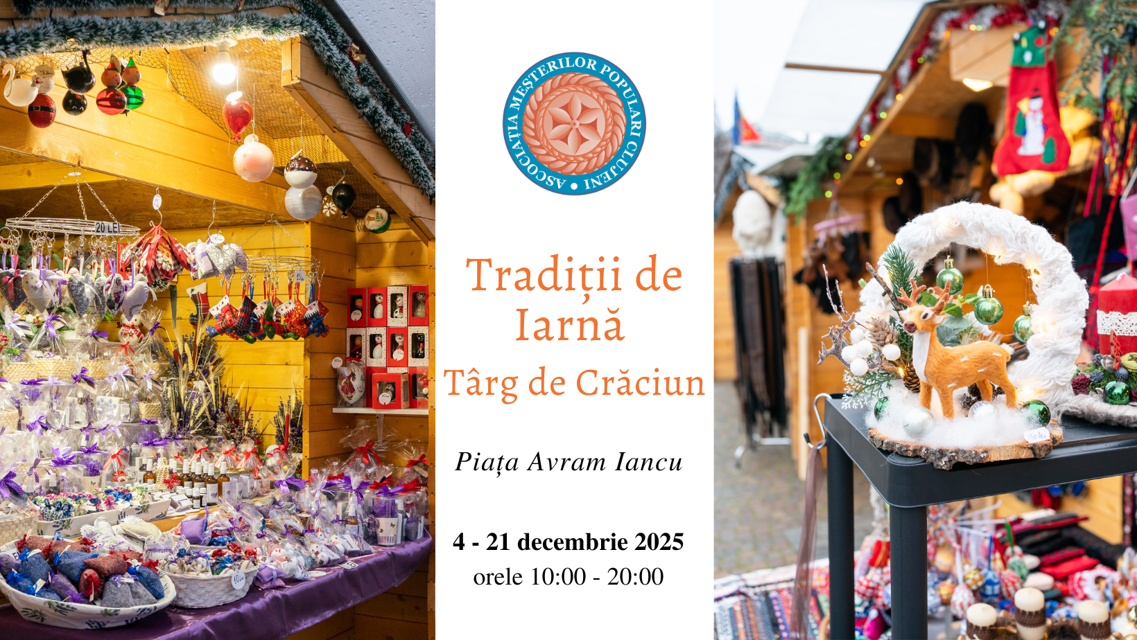 Târgul Tradiții de Iarnă organizat de Asociația Meșterilor Populari Cluj este deschis în Piața Avram Iancu până în 21 decembrie, zilnic, între orele 10:00 – 20:00.