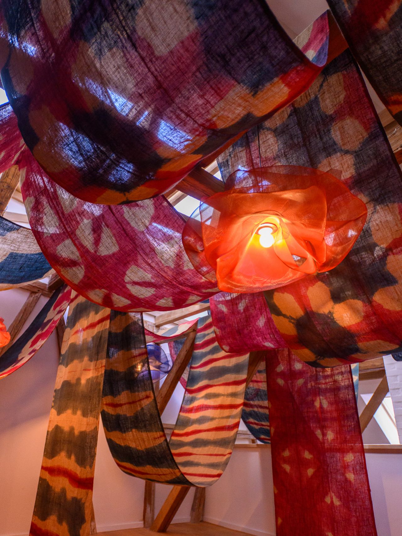 Instalația este realizată în colaborare cu Master Design Textil, Universitatea de Artă și Design din Cluj-Napoca și creatoarea Diana Buga și include peste 70 m² de experiență imersivă, cu 300+ metri de materiale textile vopsite manual în tehnica Shibori, 10+ lămpi interactive cu senzori de mișcare și 30+ locuri gândite pentru șezut, reflecție și conversație.