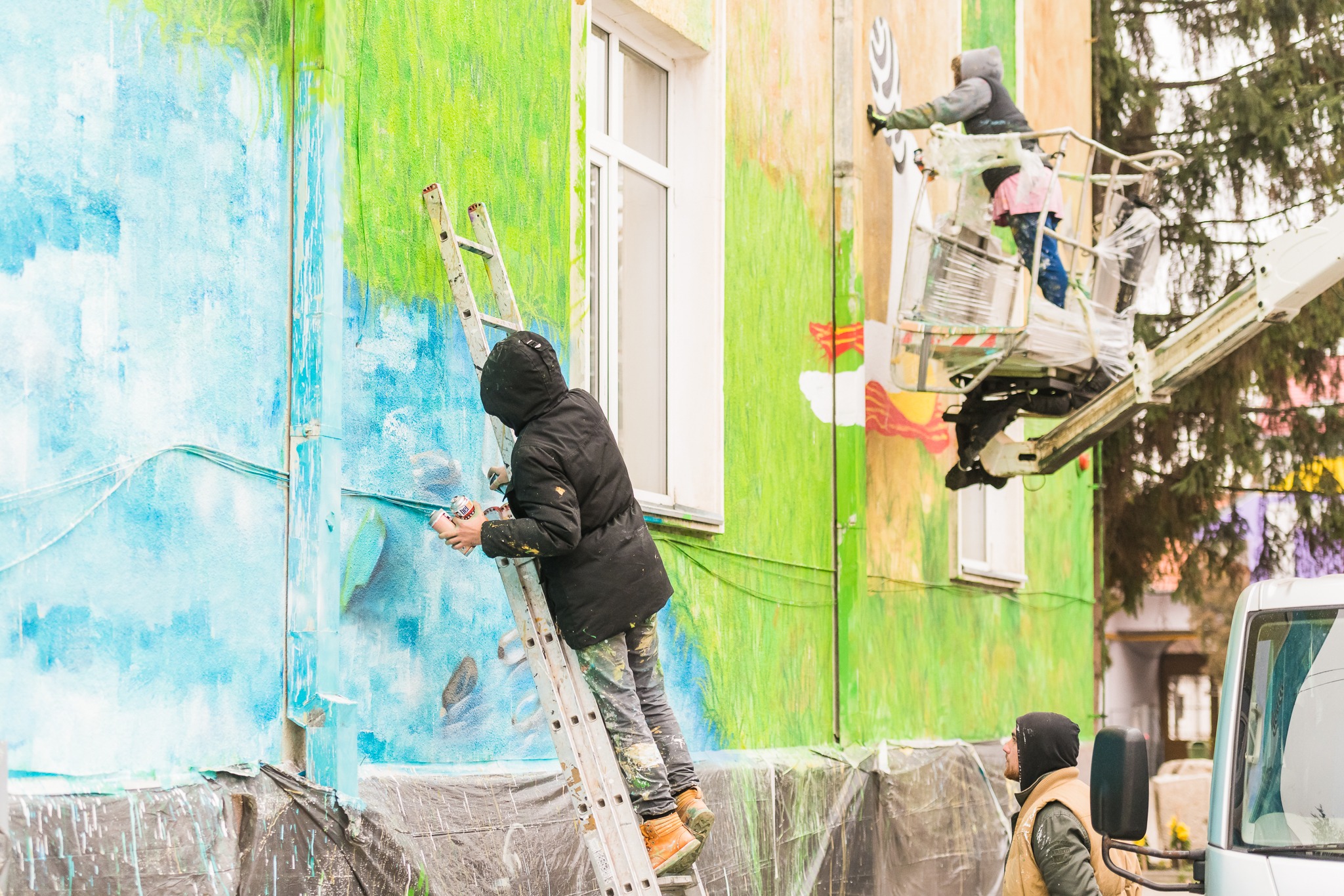 Liceul de Arte Vizuale din Cluj, colorat cu o nouă pictură murală de mari dimensiuni