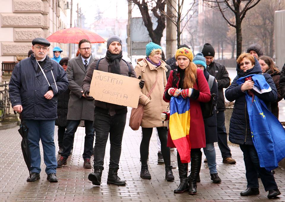 Protestul magistraților a fost susținut de pe margine de mai mulți clujeni nemulțumiți la rândul lor de adoptarea legilor justiției.