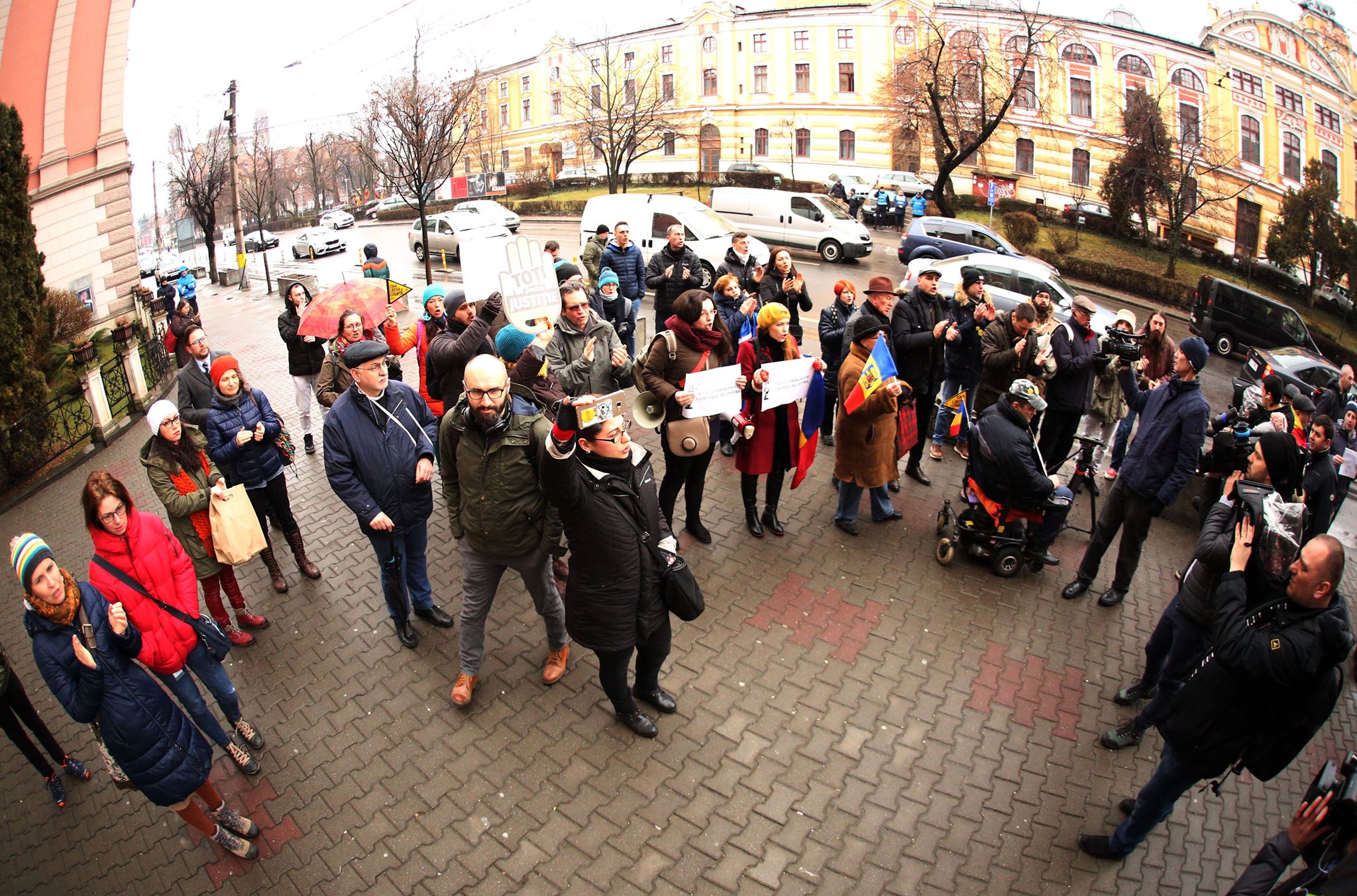 ”În unanimitate, Adunarea generală a Tribunalului Cluj a decis, în afara protestului de astăzi, să suspende activitatea judiciară pentru cel puțin o săptămână începând cu data de luni. Asta înseamnă că vom intra în sală doar pentru cazurile urgente, e vorba despre cauzele cu arestați, ordonanțe președențiale, ordine de protecție, suspendarea actelor administrative. În rest, nu vom soluționa cauze la Tribunalul Cluj.