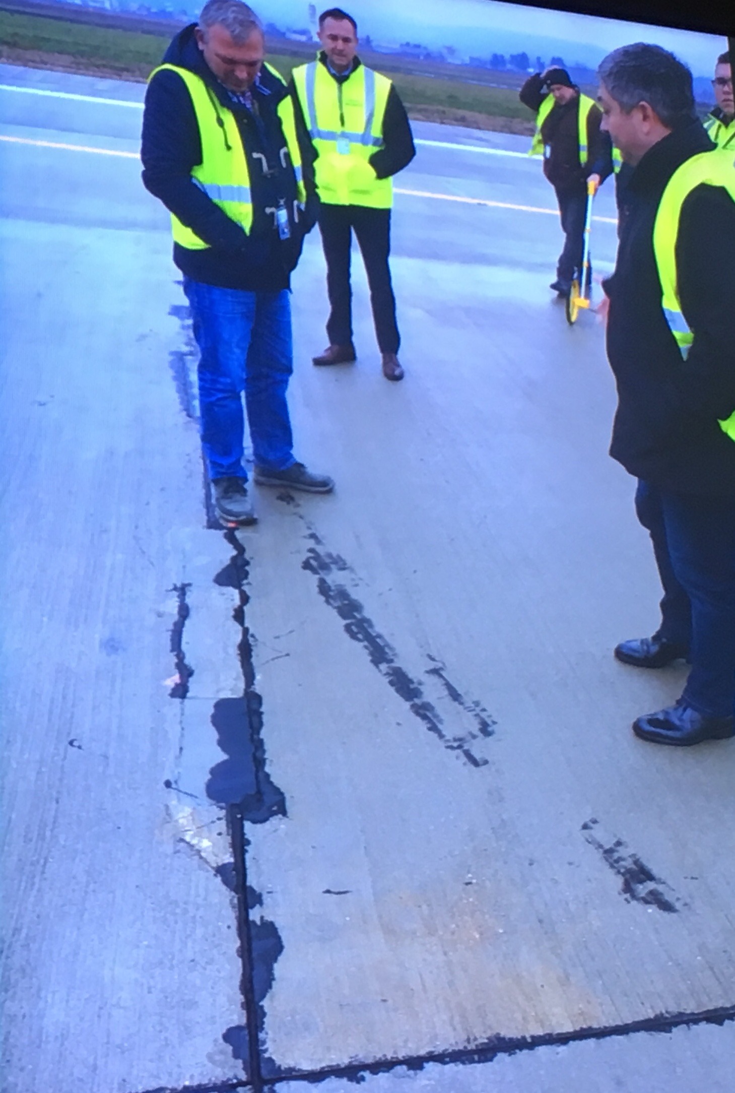 Pe ecranele din sala de consiliu au rulat apoi mai multe fotografii cu fisurile descoperite pe pista nouă a aeroportului. Disputele au continuat.
