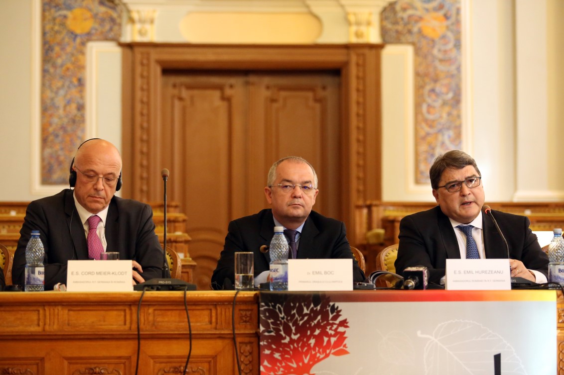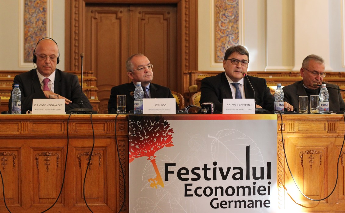„10 ani de la aderarea României la Uniunea Europeană” s-a numit dezbaterea care a avut loc La Universitatea Babeș-Bolyai, la Cluj-Napoca, în cadrul Festivalului Economiei Germane. La eveniment au participat ambasadorul Germaniei în România, Cord Meier-Klodt şi omologul său Emil Hurezeanu, Vasile Pușcaș, fost negociator-şef al României cu Uniunea Europeană, Dragoș Anastasiu, președintele Camerei de Comerț și Industrie Româno-Germane- AHK, Emil Boc, primarul municipiului Cluj-Napoca şi alţi oameni de afaceri germani. Moderatorul evenimentului, Moise Guran, a abordat teme actuale precum intrarea României în Schengen, trecerea la moneda euro, integrare fiscală, precum și rolul României şi Germaniei și responsabilitățile lor în cadrul UE.