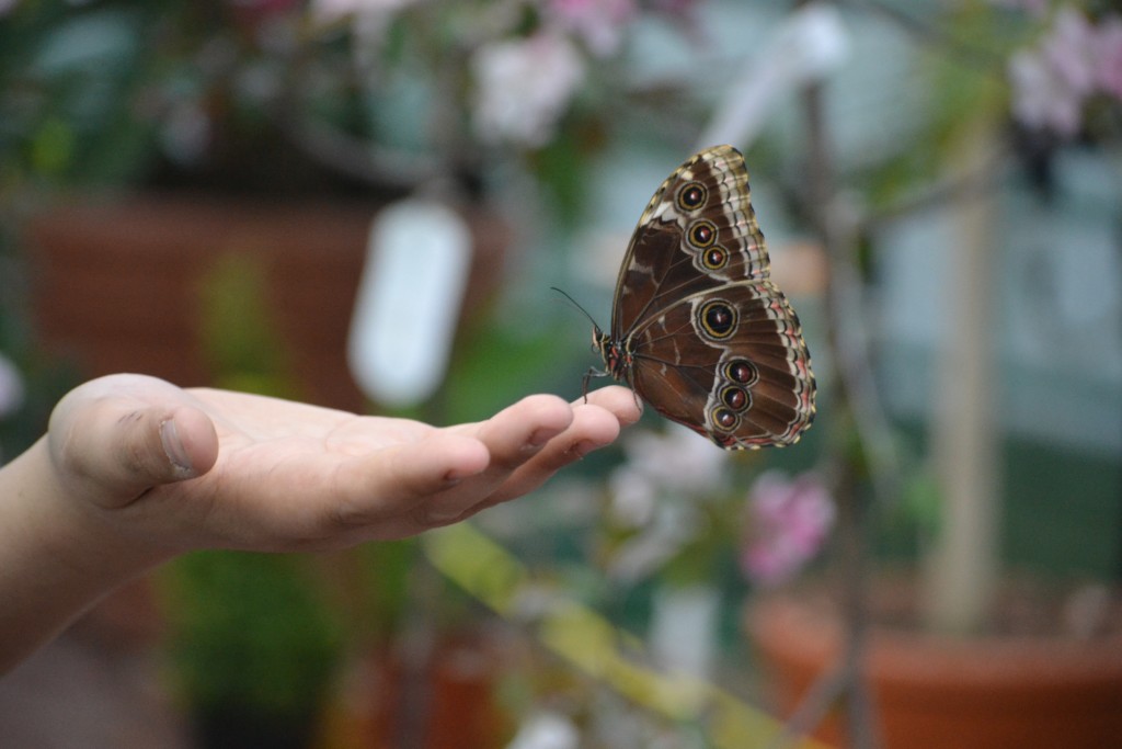 Cel mai nou membru al expoziției: fluturașul din imagine are doar câteva ore de viață, iar în curând va fi lăsat să zboare în cadrul expoziției/ Foto: Maria Man