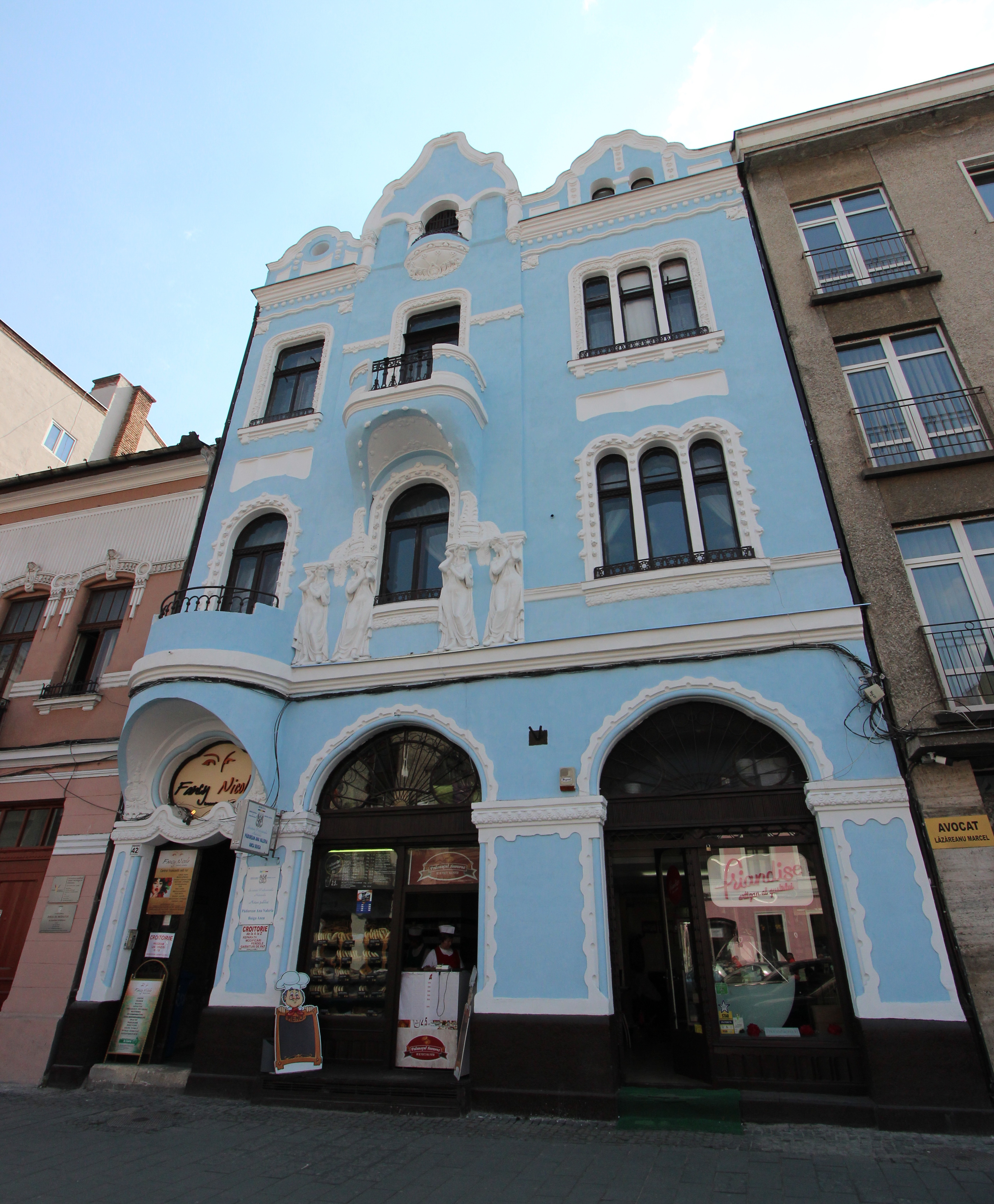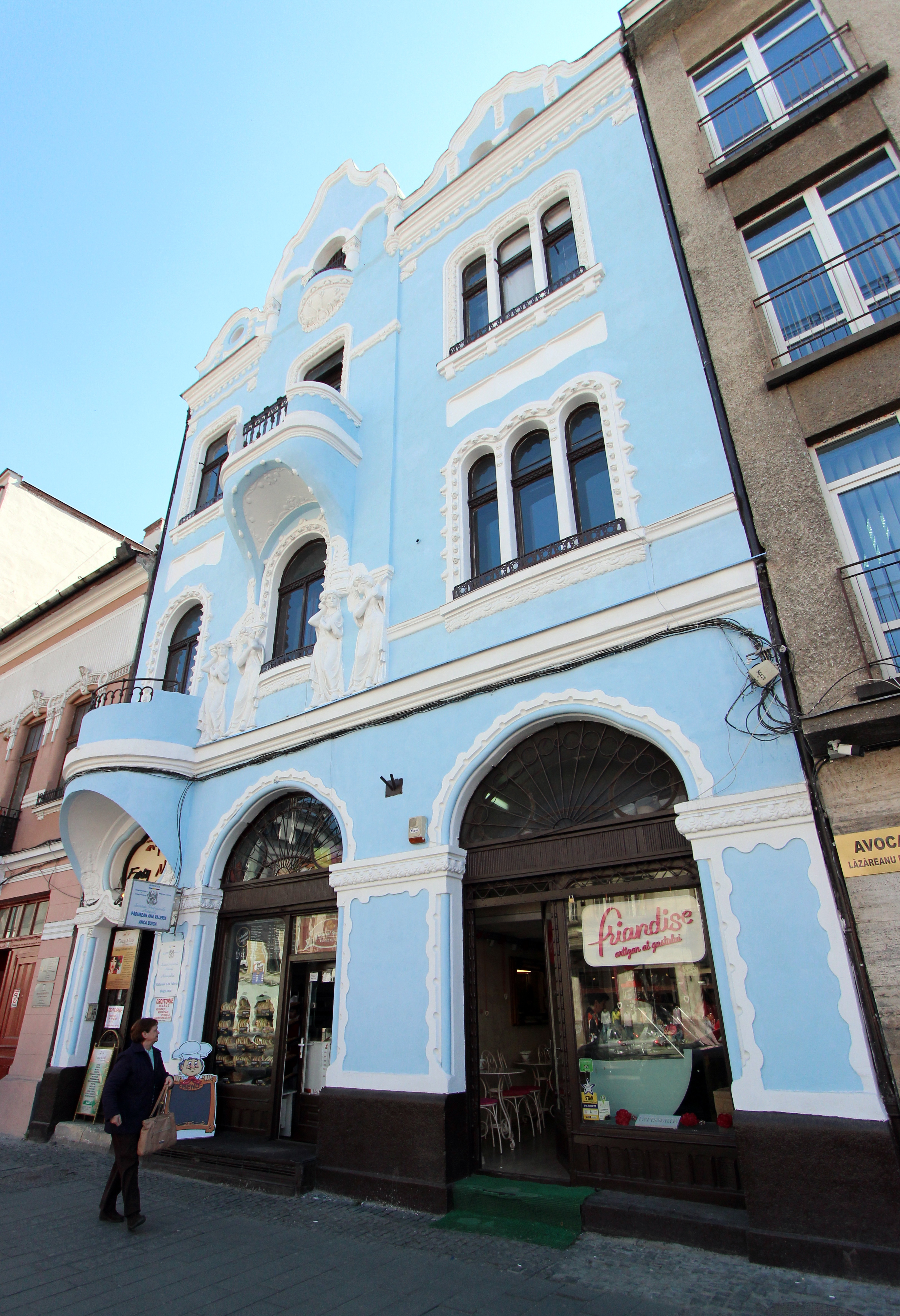 Clădirea în stil art nouveau, astăzi albastră, de pe Bulevardul Eroilor a primit o nouă viață la sfârșitul anului trecut. Chiar dacă proprietarii s-au înțeles mai greu și destul de târziu, în septembrie 2016 firma Edil CSS a lui Ștefan Ghibu a început munca la imobil. „Proprietarii au avut inițiativa, au decis să facă lucrarea, ne-au contactat pe noi și totul a fost ok. Am făcut ofertă și ne-am apucat de treabă. S-a refăcut tencuiala care a căzut, repararea tuturor elementelor și revopsirea. Ei au cerut lucrările pe care le-au considerat necesare și ei au decis ce vor să facă. Ei au decis ca peretele lateral să nu fie făcut, acolo deasupra acoperișului. Din moment ce plătesc proprietarii, știți cum e cu banii și asta au ales ei”, spune el.