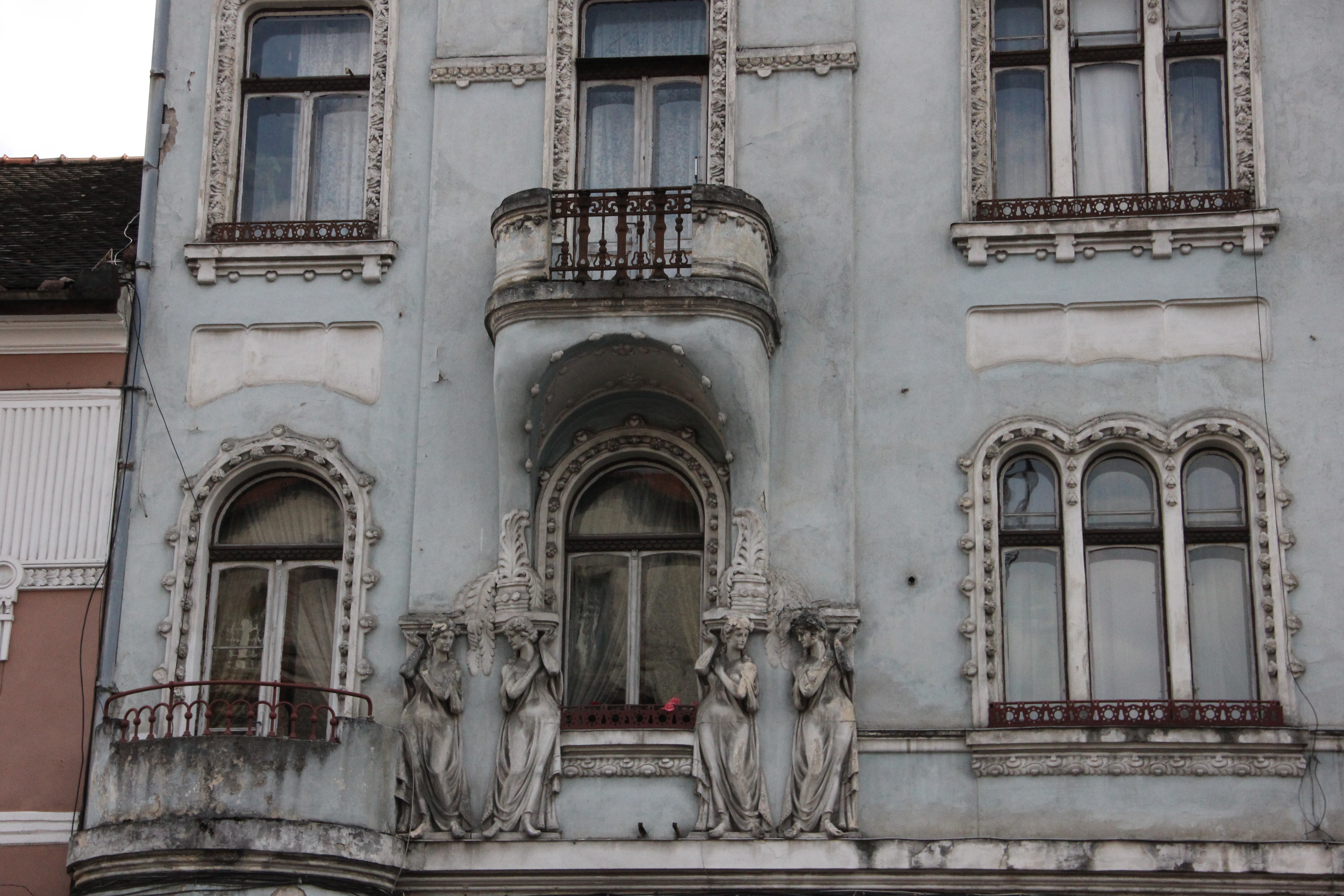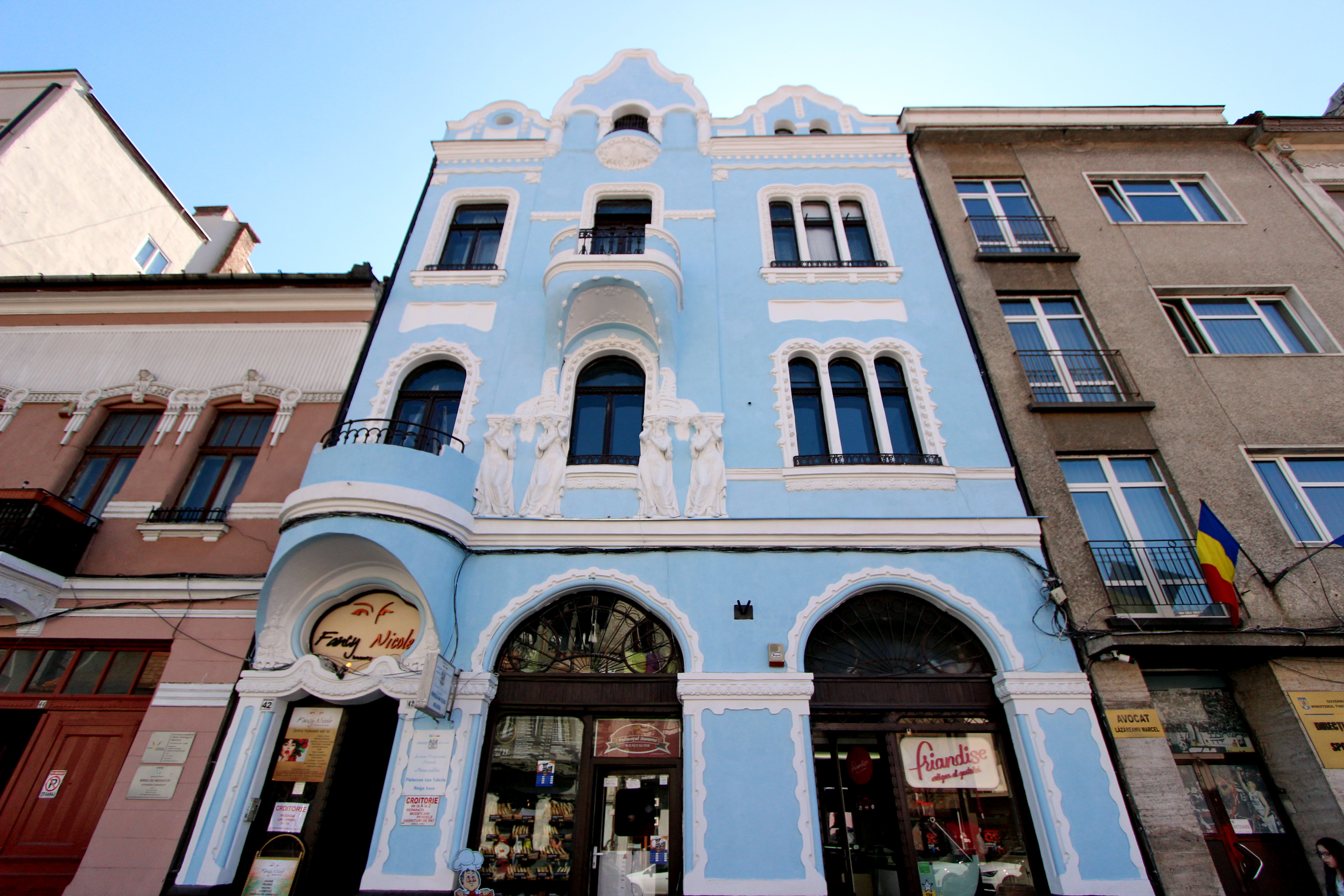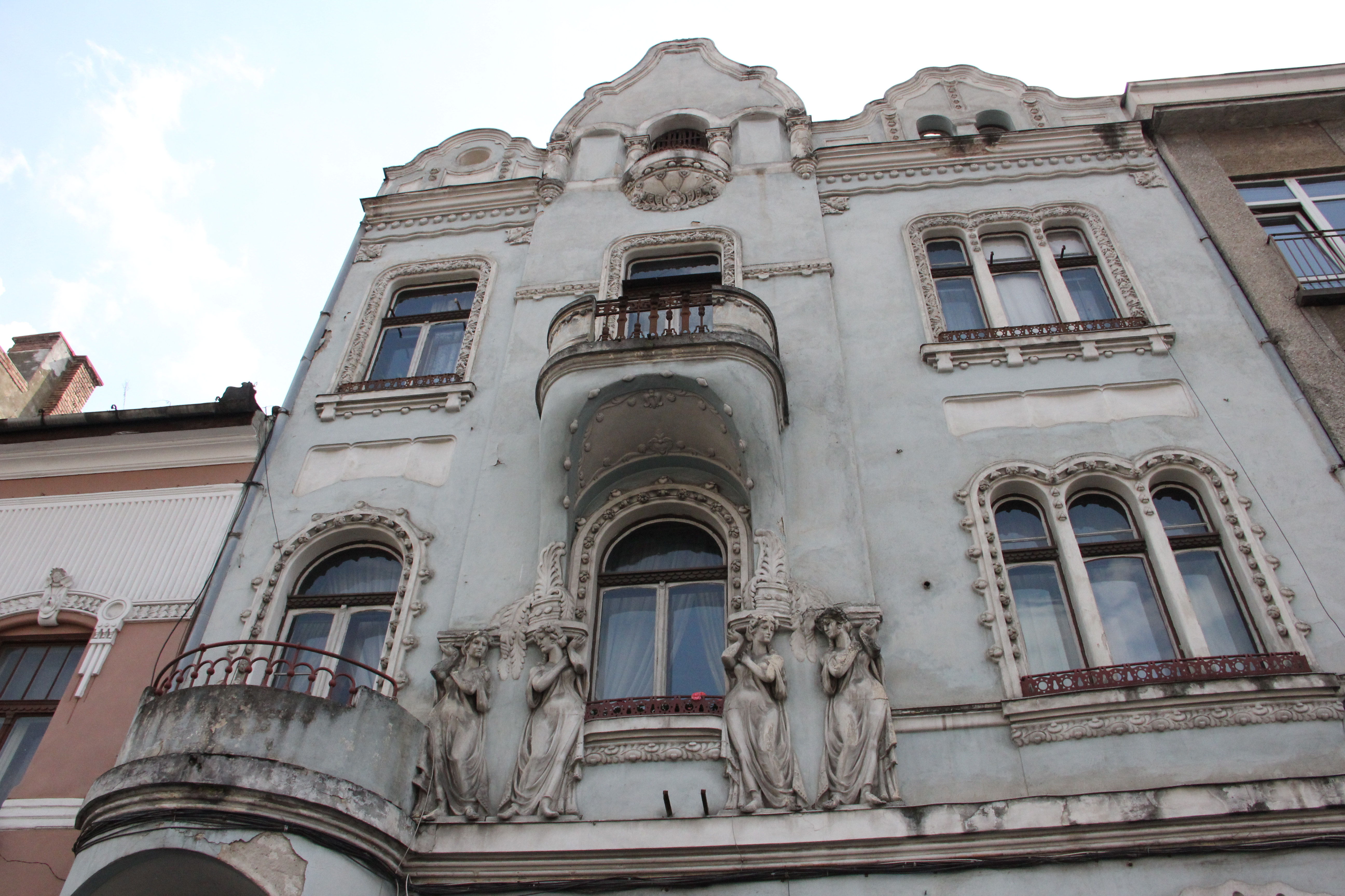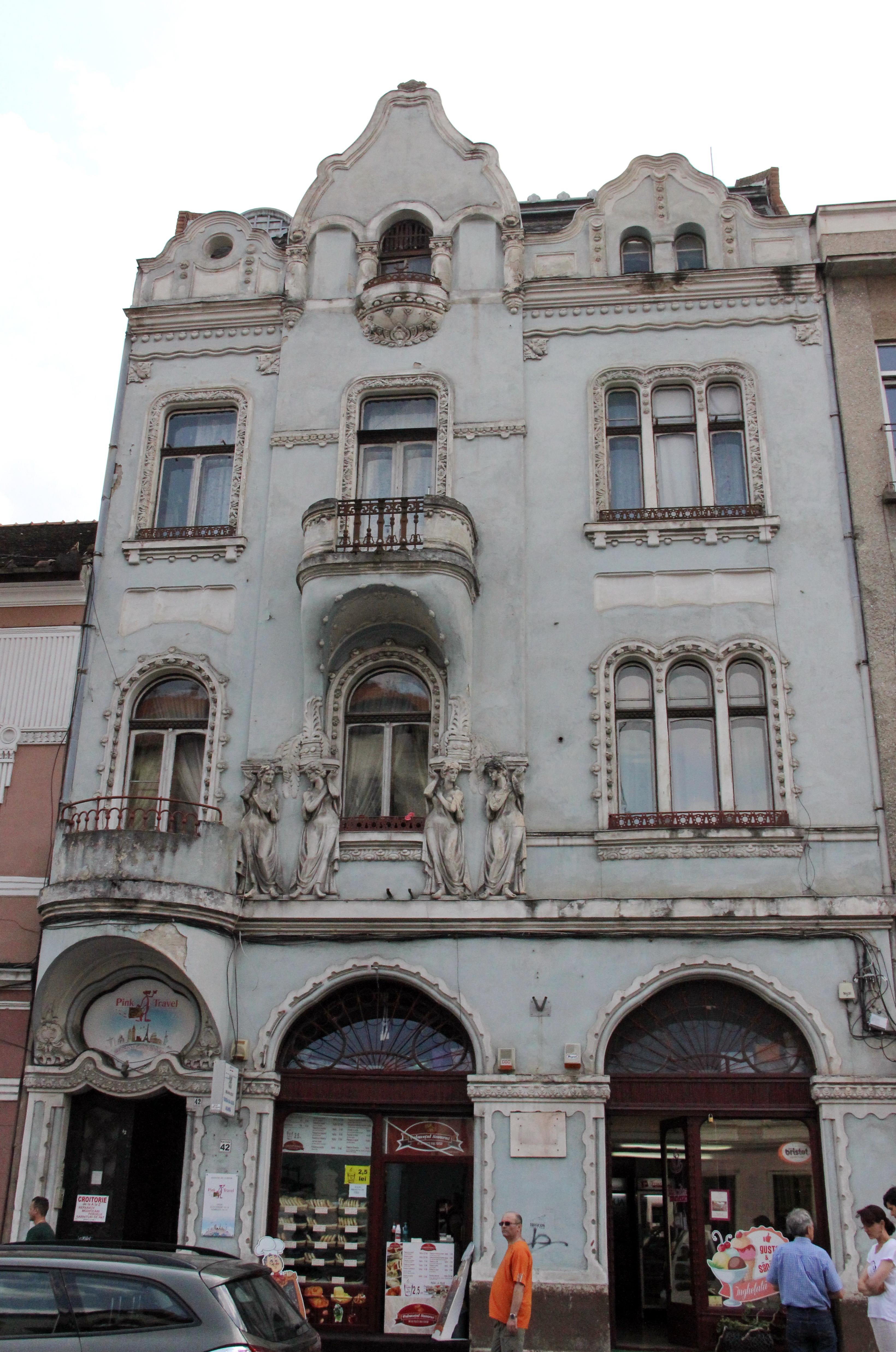 [stextbox id=”custom”]Clădirea de pe Eroilor 42 a fost construită la începutul anilor 1910, fiind o clădire cu trei etaje realizată în stilul art nouveau. În fapt, clădirea reprezintă o îmbinare a mai multor stiluri arhitecturale, astfel că cele patru sculpturi de la etajul unu al fațadei sunt realizate în stilul French Art Nouveau. Imobilul are trei balcoane, la fiecare etaj, fără că acestea să aibă o simetrie anume.[/stextbox]