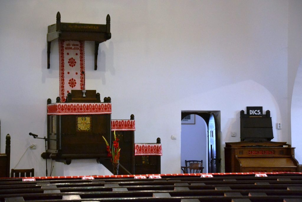 „Biserica a fost construită într-o perioadă foarte scurtă de timp, mai precis, pe parcursul a șase luni. Au început lucrările în iunie 1913, iar de Crăciun lucrarea era gata. Totul s-a făcut după proiectul lui Kos Karoly, un arhitect cunoscut în Cluj, care a proiectat de asemenea și biserici ortodoxe. Are un stil aparte, care se poate recunoaște cu ușurință. Biserica a fost renovată la împlinirea a 100 de ani de la ridicare. I se spune și Biserica cu Cocoș. Nu avem noi nimic împotriva crucii. De obicei însă, bisericile sunt ținute minte după modul în care arată interiorul, iar biserica ortodoxă și cea catolică au drept simbol crucea. Arhitectul a avut o altă viziune și a căutat un simbol creștin, vechi. Cocoșul a fost simbolul creștin ales”, explică preotul paroh Pap Géza.