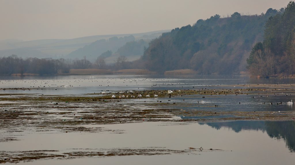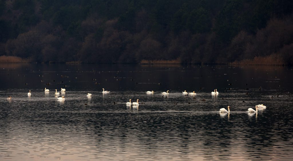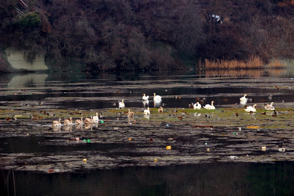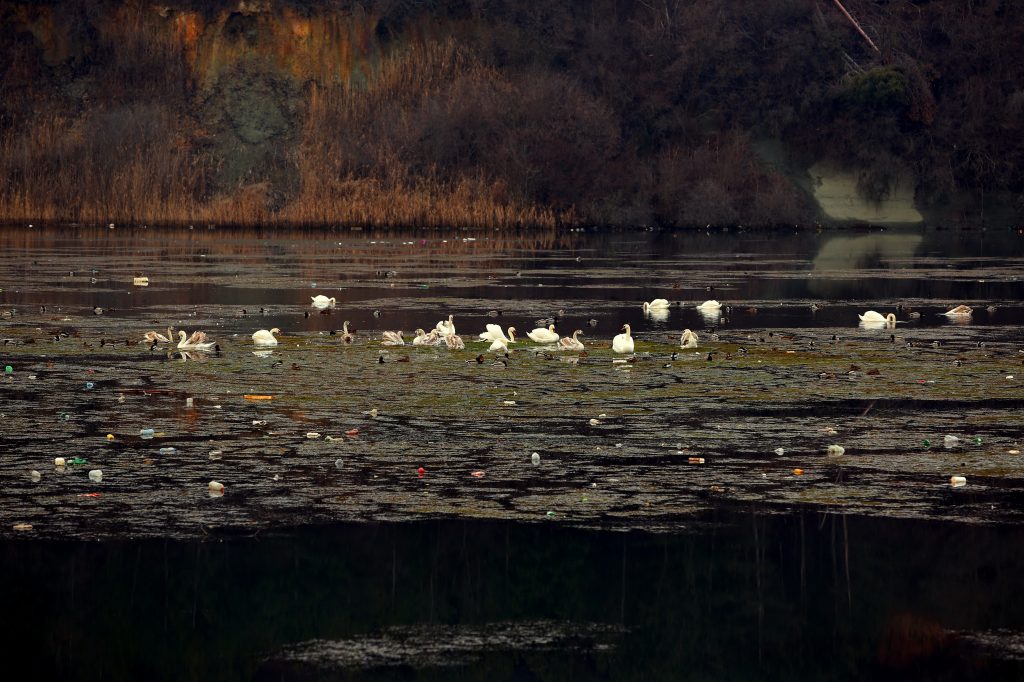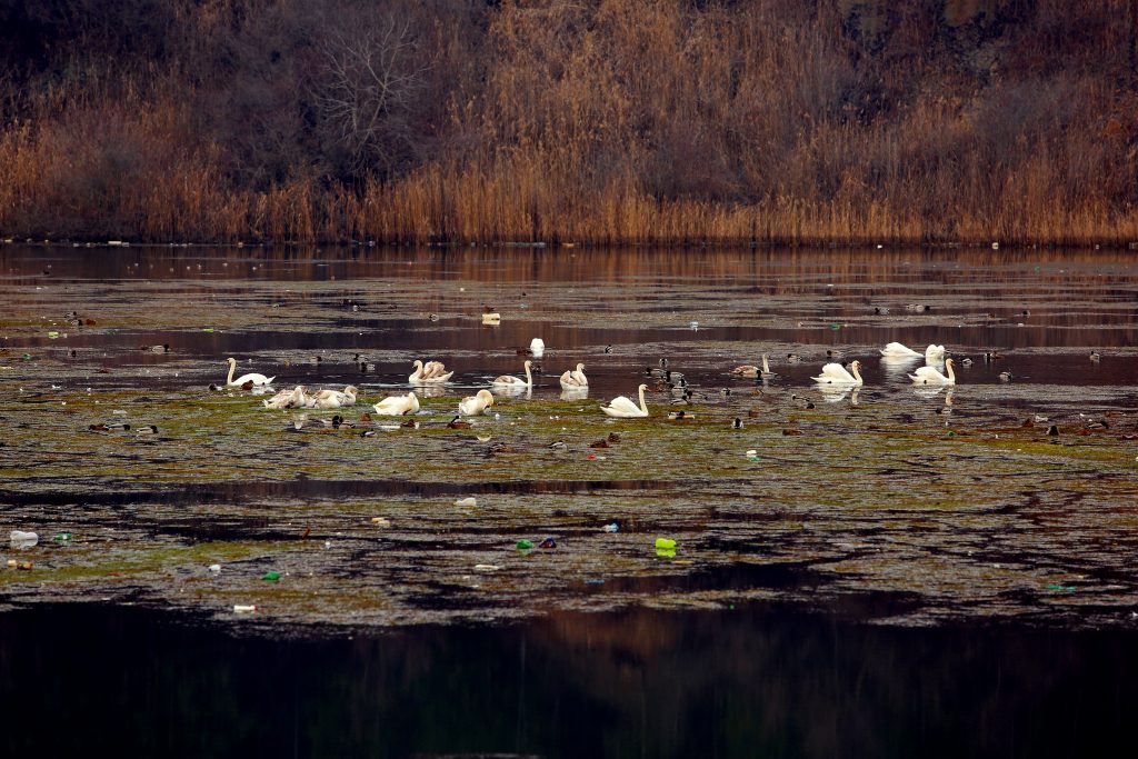 De un alb imaculat sau gri-maroniu, acestea se confundă adesea, dacă sunt la distanță de privitor cu mulțimea de gunoaie din această zonă, gunoaie care plutesc nestingherite pe suprafața apei. Peisajul din jur este dezolant: mizerie cât cuprinde, clădiri dezafectate și o mare de nepăsare. Dar dacă alegi să ignori mediul insalubru și să privești în zare, să admiri dealurile în culori arămii, zborul lin al lebdeleor, lupta lor jucăușă pentru verdeața de pe fundul apei, plimbarea lină, în coloană, dar de multe ori dezordonată, natura îți oferă un spectacol aparte, care te face să uiți de tot pentru câteva clipe.
