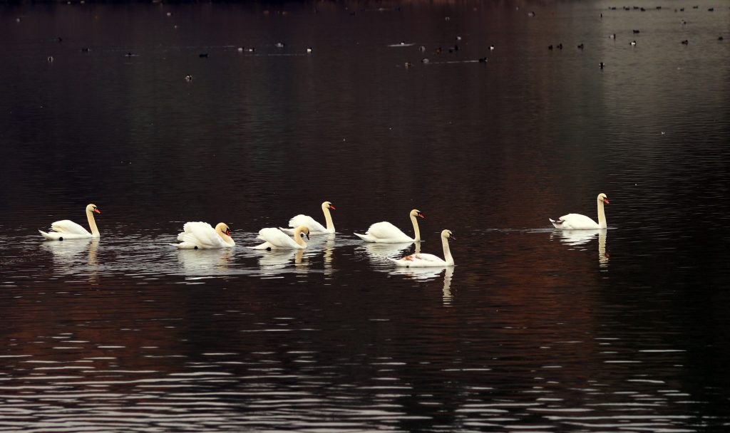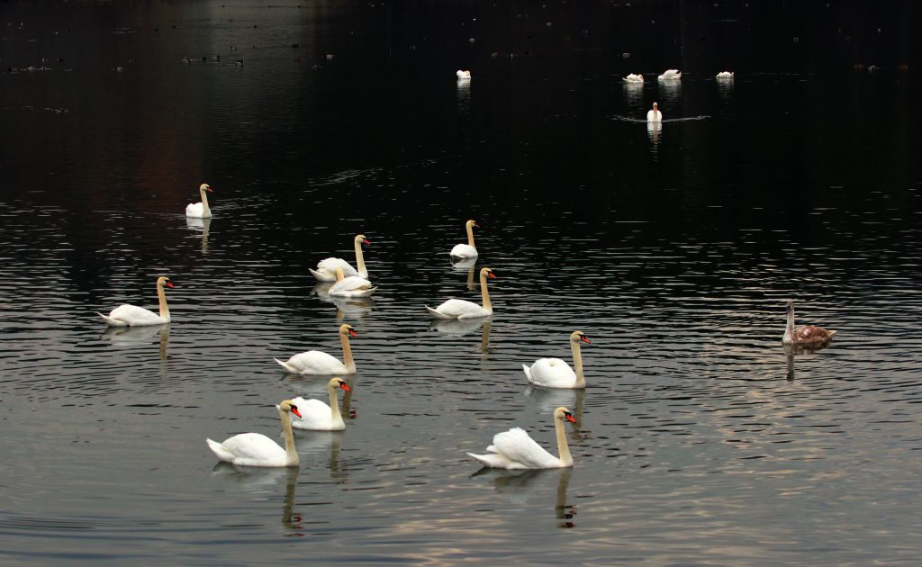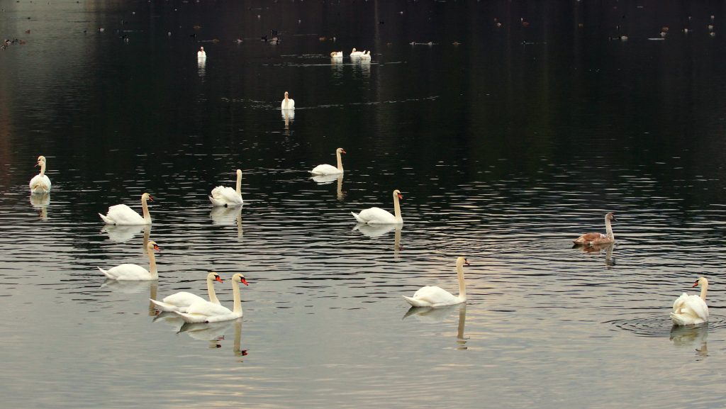 Familia lebedelor e completată de sutele de rațe care înoată voioase și de pescărușii care fie se ascund prin copaci, fie dau concerte, precum făceau azi vară pe malul mării.