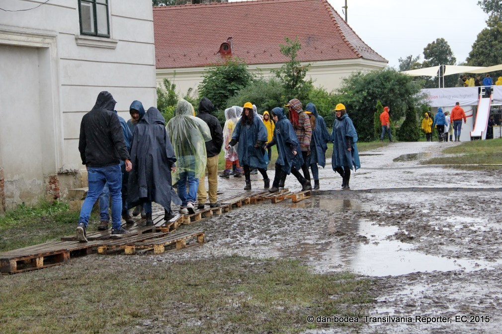 Organizatorii au încercat să îi vină de hac noroiului instalând câteva „poteci” de lemn / Foto: Dan Bodea