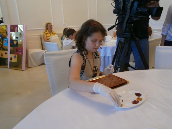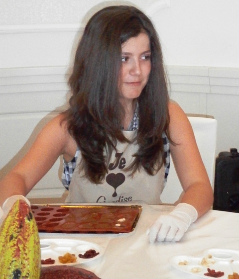 Prima care ne-a răspuns foarte serioasă la întrebări, în timp ce aştepta să îşi demonstreze priceperea în arta combinaţiilor de ciocolată cu fructe, a fost o fetiţă de 10 ani, Anca Diana, elevă în clasa a IV-a la Liceul Teoretic Onisifor Ghibu. „Sunt foarte bucuroasă că am venit la acest atelier pentru că îmi place să lucrez cu ciocolata, cu dulciuri, cu patiserie pentru că tata lucrează în domeniu. Preferata mea este ciocolata cu lapte”, spune Anca. De la ceva dulce, am trecut la ceva mai „amar”. „Dar la şcoală îţi place? Ce anume îţi place?”. „La școală îmi place ca materie muzica și educația plastică, pictatul. Pictez, îmi place, merg și la un atelier de pictură”. „Dar înveţi şi lucruri utile, interesante?”. „Da, învăț lucruri utile, interesante, practice”. La cei 10 ani ai săi Anca ştie foarte bine câte prietene are. „Am multe prietene, mai ales colege de clasă. Am prietenă pe Jasmina, pe Ana, Gabriela, Mara și cam atâtea am prietene foarte bune”. Dar şi cum vrea să îşi ocupe timpul. „Ne jucăm împreună în pauze: elastic, cu mingea de baschet, suntem active, sportive”. „Faci și sport?”. „Aș vrea să fac baschet sau karate”. „Karate? Cum aşa?”. „Face Ana și am văzut și la televizor și ei îi place și mi-a povestit și mie. Și a zis că e acțiune şi mie îmi place când e acţiune”, ne explică Anca alegerea ei de sport nu tocmai clasică pentru o fetiţă. „Dar eşti fericită?”. „Da, sunt fericită, am o viață frumoasă”. „Şi ce ţi-ai mai dori?”. „Ce mi-aș mai dori? Nu îmi doresc neapărat ceva că am multe lucruri frumoase”. „Dar de 1 iunie ce dorință ai?”. „Îi greu de ales că-s foarte multe, dar mă bucur că am venit la atelierul de ciocolată”. „Care e cea mai mare calitate a ta?”. „Cea mai mare calitate a mea este creativitatea”.