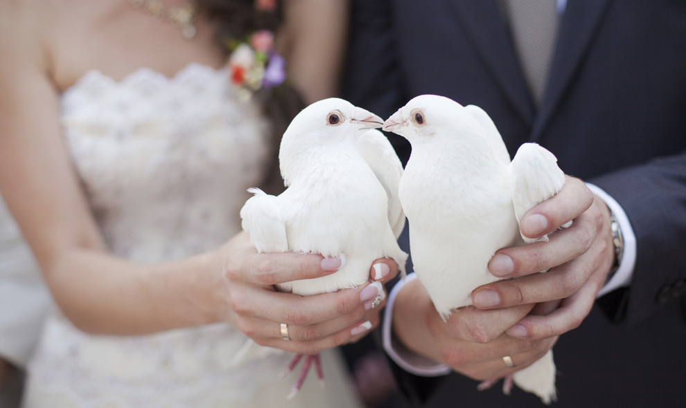 Porumbelul este un simbol al loialităţii, fidelităţii şi al iubirii, iar ideea de a elibera porumbei după ceremonia religioasă este are rolul de a aduce un plus de romantism atmosferei şi de a o face pe mireasă să se simtă ca o prinţesă, personaj în propriul basm. În mitologie, porumbelul era o pasăre cu semnificaţii foarte puternice – acesta simboliza pacea interioară şi armonia. Potrivit Bibliei, porumbelul a fost pasărea trimisă de Noe, ca mesager. Pasărea s-a întors cu o crenguţă de măslin care semnifică faptul că apa a dispărut. Simbolul inocenţei şi a purităţii, porumbelul este una dintre formele pe care le-a luat Spiritul Duh când a coborât pe pământ. În mitologia greacă, porumbelul Afroditei era pasărea care simboliza dragostea. Arabii văd în această pasăre un mesager al iubirii, al păcii şi al norocului, al fidelităţii dintre mire şi mireasă. Este adevărat că acest obicei aduce un cost în plus, dar dacă doriţi ca invitaţii dumneavoastră să rămână impresionaţi şi bucuroşi de ceea ce au văzut, se merită. Luaţi în considerare şi faptul că porumbelul este simbolul purităţii şi profitaţi de acest lucru implicându-i în ceremonie – pe lângă faptul că se obişnuieşte să se elibereze porumbei după terminarea ceremoniei religioase, unele cupluri adoptă şi ideea de a pune o pereche de porumbei la intrarea în biserică pentru a-i aştepta.