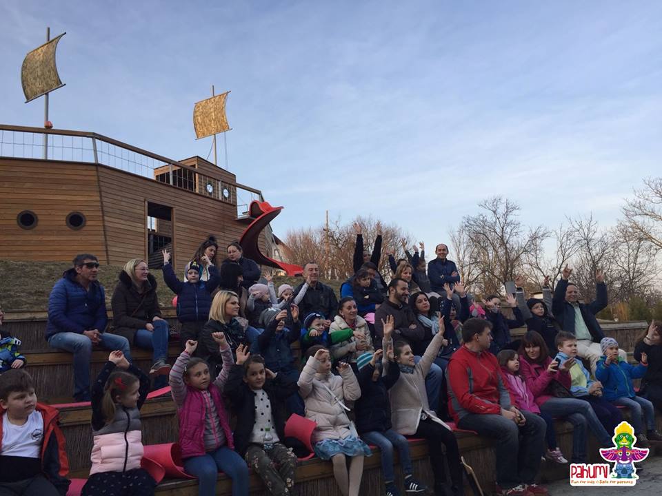 Spaţiul de joacă Pahumi şi-a deschis porţile acum un an şi jumătate, timp în care a organizat sute de petreceri aniversare, dar şi tabere pentru copii. Pahumi le oferă copiilor petreceri coordonate de animatori profesioniști. Petrecerile sunt organizate în funcție de vârstă, iar un pachet standard conține: închirierea sălii pentru trei ore, personal calificat, amenajare și decorare sală, sonorizare, sistem karaoke, biliard, air-hochei, jucării, jocuri de societate, colț Lego City, Xbox, invitații personalizate, iar programul celor mici include jocuri distractive și de societate, concursuri, activități sportive (cățărare, tenis de masă, tiroliană), activități outdoor, accesul la ansamblul tip corabie cu tobogan. Pentru toate acestea și pentru un număr maxim de 10 copii, părinții trebuie să scoată din buzunar 500 de lei. Pentru fiecare copil în plus, costul este de 50 de lei/ copil. Cei care doresc, au la dispoziție o serie de servicii extra, dintre care amintim: tortul personalizat (trei kilograme la prețul de 250 de lei), face painting (50 de lei), șampanie pentru copii (15 lei), lumânări și artificii pentru tort (15 lei), lansare lampioane (50 de lei), spectacol de magie (300 de lei), fotografii profesionale (150 de lei), fotografii și album foto (250 de lei), treasure hunt (50 de lei), cadouri pentru invitații la petrecere (50 de lei). Prelungirea petrecerii se plătește cu 50 de lei pentru fiecare jumătate de oră în plus.