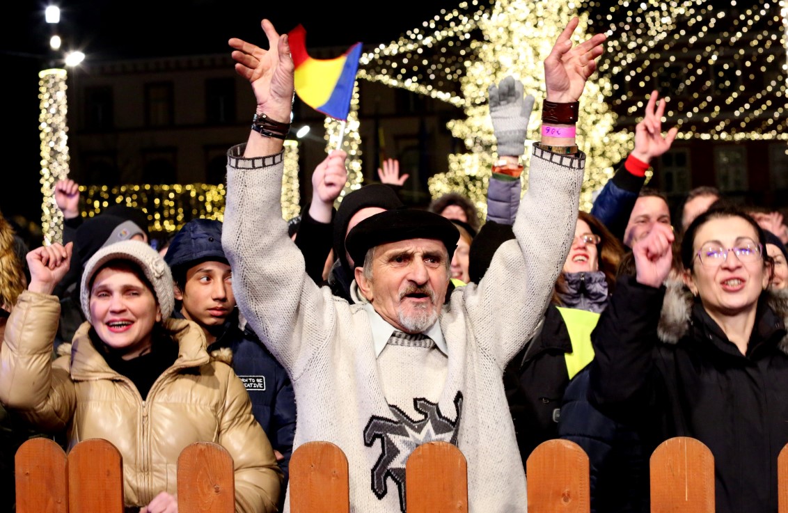 Nici de data aceasta primarul Emil Boc nu a petrecut Revelionul în Piața Unirii. De altfel niciun politician sau persoană publică nu a fost văzut printre oameni. Petrecerea s-a terminat cu recitalul susținut de veteranii muzicii etno, Ro-Mania.
