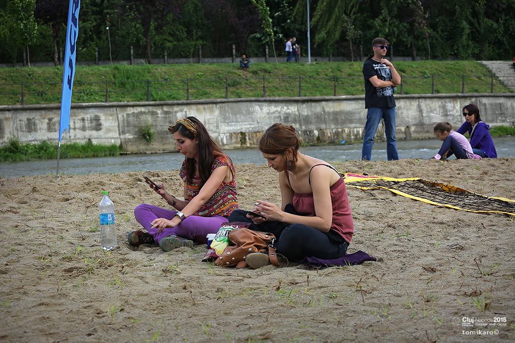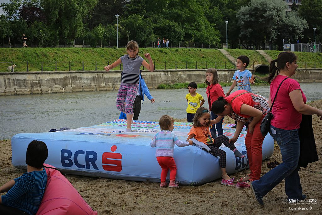 Pe plajă, în apropierea prosopului colorat al Andrei, doi copii se joacă în nisip cu diverse forme, sub supravegherea atentă a bunicii. Aceasta nu îi lasă să intre în apă. Cei mici au în schimb pistoale cu apă pentru joacă, iar de „aprovizionarea” acestora se ocupă bunica. „Ne place aici. Mai vin cu nepoții. E aproape de casă. Se joacă și ei în nisip. În plus mai schimbăm programul obligatoriu de mers în parc făcut de mama, cu puțină joacă în nisip. Deși e apă mică, mi-e frică să îi las. Ei sunt mici, iar Someșul e totuși un râu, iar râurile pot fi pline de surprize. Prefer să le aduc eu apă, fie în găletușe, fie în pistol, iar ei se joacă”, spune Narcisa Radu, în vârstă de 65 de ani.