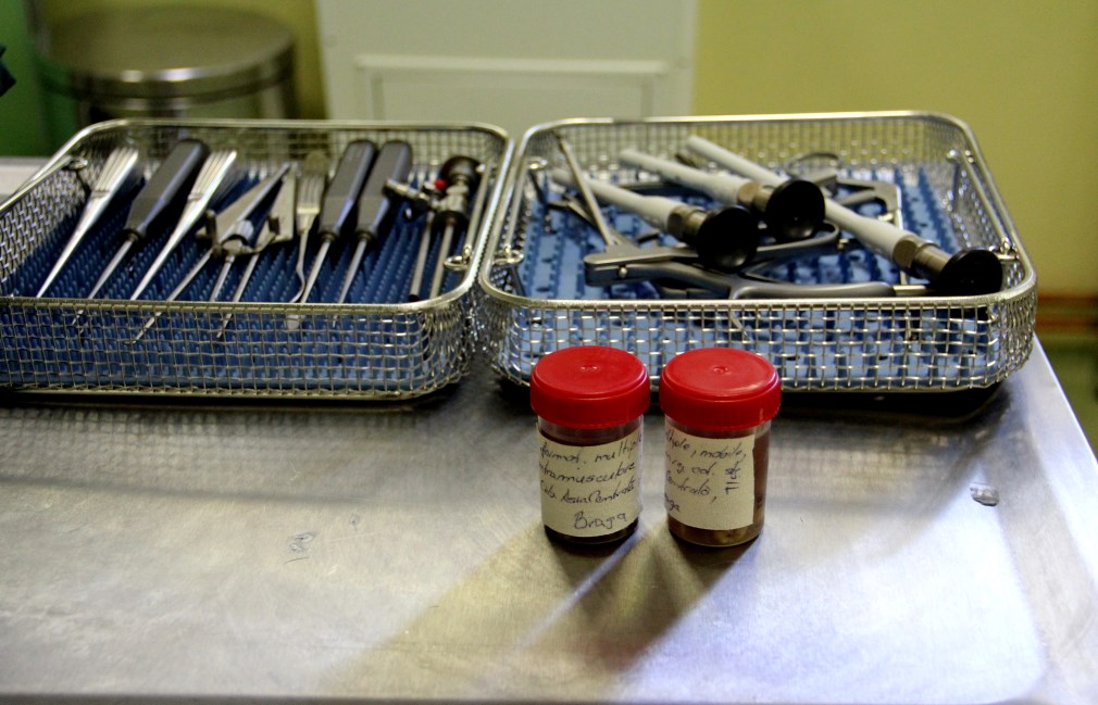 Surplusul care a fost eliminat în timpul intervenției (în cazul cățelușei Braga) va fi supus unei analize amănunțite în cadrul laboratorului USAMV/ Foto: Dan Bodea