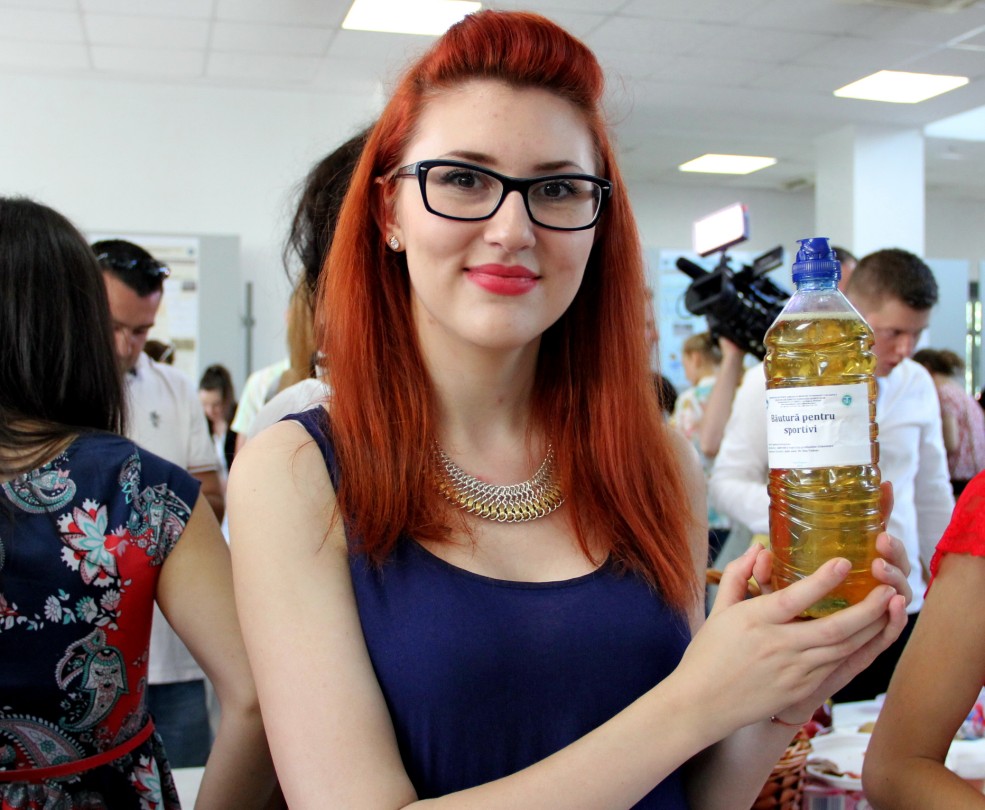 „Am ales să fac o băutură pentru sportivi și am încercat să fac o alternativă pentru produsele de pe piață, o alternativă mai naturală și mai sănătoasă. Băutura este făcută din plante ca sunătoarea, ceaiul negru sau echinaceea și microcapsulele de electroliți. Față de produsele de comerț, această băutură nu are adaosuri, este realziată doar din plante și nu are nici măcar îndulcitori. Este de asemenea singura băutură cu astfel de microcapsule. Am testat pe sportivi băutura si am avut parte de un feedback bun. Ar fi ideal să ajung să comercializez băutura deși sincer, mi-aș dori să lucrez mai departe în panificație”, spune Georgiana Agrișan, studentă la Controlul și expertiza produselor alimentare.