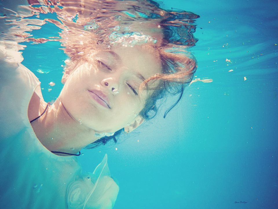 Mărturisește că fotografia pe sub apă îi aduce, pe lângă satisfacția de a știi că lucrează la un proiect inedit, multă liniște. „În momentul în care intru pe sub apă se formează o liniște în jurul meu și e atât de frumos felul în care relaționăm, felul în care ne descurcăm pe sub apă, cu toată că nu vorbim. Pur și simplu știm fiecare ce avem de făcut. În 2013 am avut o prezentare și atunci au conștientizat ele cât de mari se văd acolo pe ecran. Le-a plăcut. Am testat alt aparat și au venit cu foarte multe idei de pus în practică. Au intrat amândouă în apă și au făcut o poveste pe sub apă. Eu doar fotografiam. Pe sub apă e liniște și fotografiez cu ele sub toate formele, ne legăm de recuzită. Am reușit la un moment dat și am băgat în cadrul și un copac. E o poveste întreagă. Îmi pare rău că e doar pe perioada de vară. Acum se apropie și de abia aștept să intrăm din nou pe sub apă. E un moment apropiere între noi. E magie”, spune Gina.