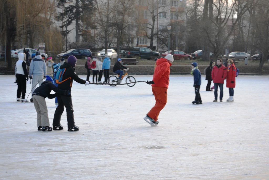 În ultima zi de „vacanță”, clujenii au „încins” gheața: lacul Chios s-a transformat în patinoar, teren de hochei și pistă pentru biciclete
