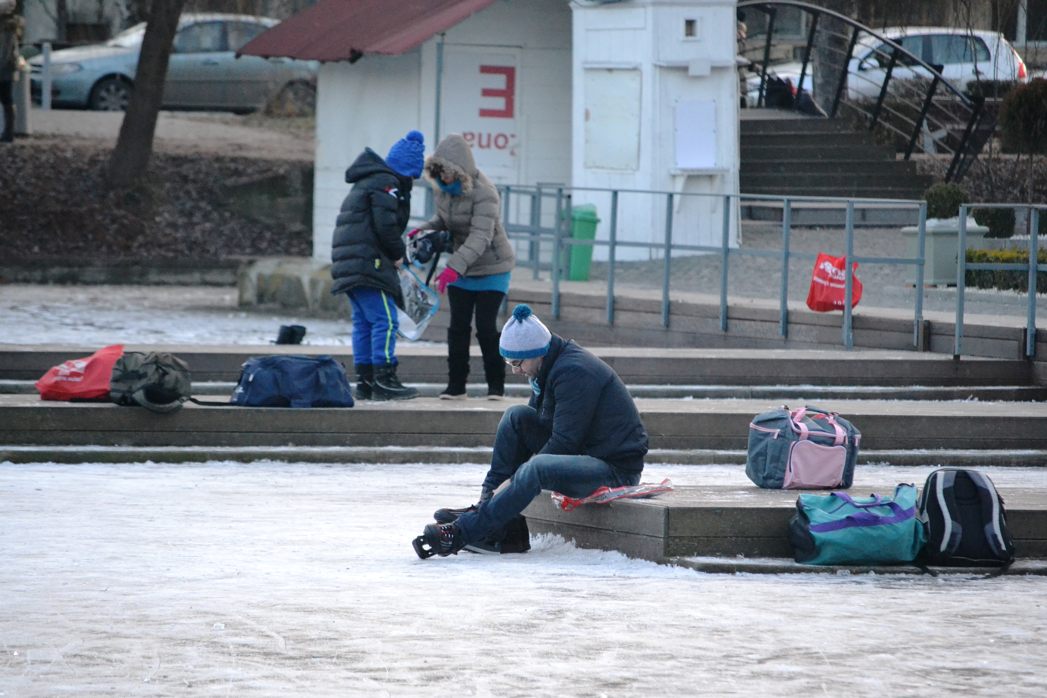 Pe marginea lacului sunt improvizate din loc în loc mici garderobe, unde clujenii își lasă hainele, papucii de schimb sau chiar patinele, după ce și-au potolit „setea de gheață”.