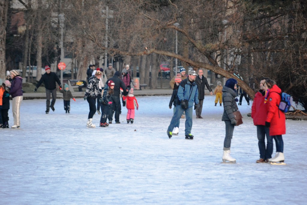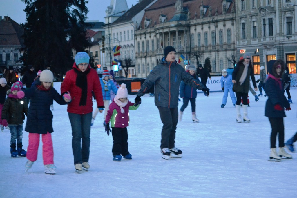 Nici patinoarele „oficiale” nu au dus lipsă de clienți astăzi, atât cel din Piața Unirii, cât și Patinoarul Fiesta Sport, amenajat în parcarea Hipermarketului Cora, fiind pline de clujeni dornici să își petreacă pe gheață ultima zi de „vacanță”.