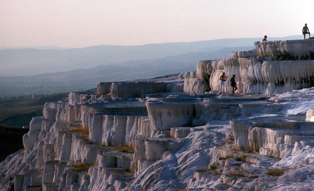 Dar toate acestea sunt doar un aperitiv pentru atracția principală, o minune geologică a lumii, care se odihnește în jos de orașul antic – terasele de calcar, netezite în valuri de apa termală, se întind pe 2.700 de metri și pe o înălțime de 600 de metri. Ele sunt chiar în „buza” orașului antic.