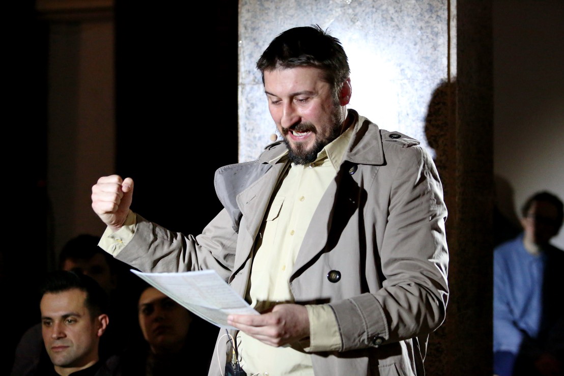„Sunt texte de sertar pe care nu le-am jucat niciodată și care se dovedesc potrivite pentru exorcizarea unor frustrări pe care le avem. Este o nevoie și a noastră, a actorilor, de a veni spre spectatori. Iarna trecută s-au întâmplat tot felul de lucruri care mă enervau și nu îmi erau suficiente textele pe care le aveam la teatru, în spectacole. Și atunci a fost o nevoie de exprimare și de revoltă, de a-mi dori ca anumite cuvinte să fie rostite și auzite de către oameni. Cred că prima dată când am făcut ceva de genul acesta a fost la Baia Turcească din Iași când am citit «Urletul» de Allen Ginsberg. Acolo a venit și regizorul Alexandru Dabija și țin minte că mi-a zis că fac foarte bine citind textul de pe foi. Ținând foaia în mână nu înseamnă că nu te joci cu intenții, cu ideea unui personaj. Cititul are un alt impact pentru spectator. Îi atingi alte coarde prin care îl prevenim că putem oricând să comentăm obiectiv textul, să ne detașăm de el și să reintrăm apoi în acest circuit”, precizează Ionuț Caras.