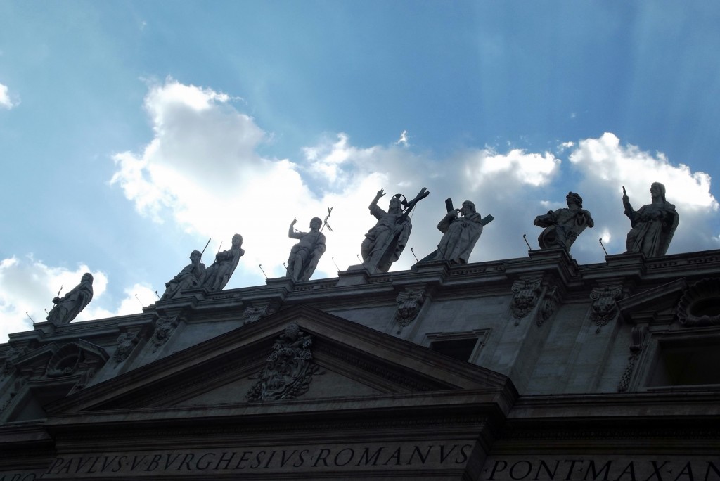 3. Bazilica San Pietro este cea mai mare biserică din lume. În interior, dimensiunile te copleșesc. Cel puțin în aparență, Biserica Sf. Mihail din centrul Clujului ar putea să încapă într-o capelă laterală a Bazilicii San Pietro. În exterior, frontonul bisericii este împodobit cu 13 statui de sfinți, respectiv Iisus. Sfântulu Ioan Botezătorul și 11 șin cei 12 apostoli. Lipsește apostolul Pavel, deoarece o statuia a acestuie există în Piața San Pietro. Cele cinci monumente din partea centrală a bisericii îi înfățișează pe Sfântul Iacov cel Mare, Sf. Ioan Botezătorul, Iisus, Sf. Andrei și Sf. Ioan Apostolul (de la stânga la dreapta).