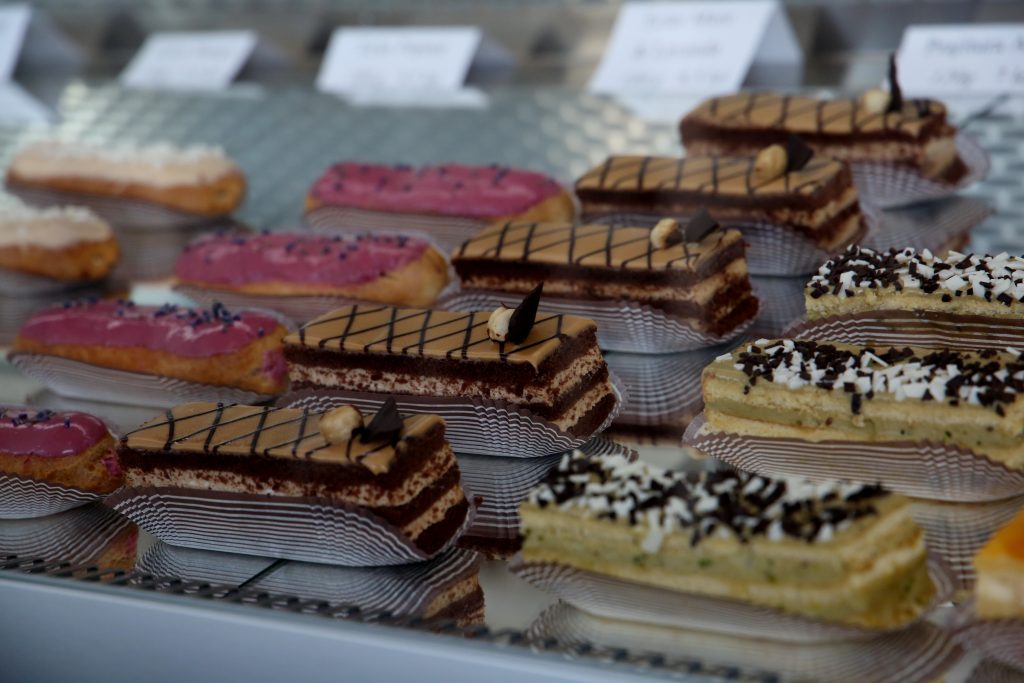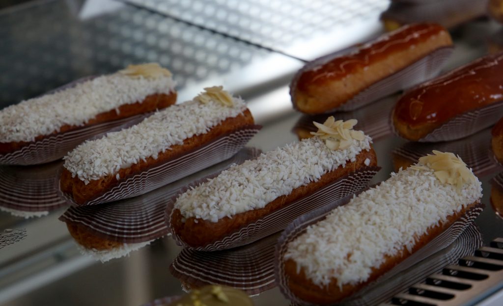 Aici nu veţi găsi doar eclerele clasice cu care a fost obişnuită piaţa clujeană până de curând şi anume: eclerul cu ciocolată şi cu vanilie, ci peste 30 de sortimente care de care mai apetisante sau ciudate, la o primă vedere. Printre vedetele sezonului se numără Eclerul cu caramel sărat, Eclerul cu mure roşie şi lavandă, Eclerul cu mango, Eclerul cu fistic, Eclerul Raffaello şi multe altele. Dacă eşti dispus să trăieşti o altfel de experienţă şi să îţi răsfeţi simţurile, ai de unde alege. Iar gustul te va surprinde de fiecare dată, ducându-te pe un tărâm al amintirilor, al basmului, al dulcelui autentic. Vei retrăi o parte din copilărie, într-o clipă. Dacă alegi să savurezi eclerul la el acasă, vei fi servit cum scrie la carte. Eclerul magic poate fi savurat în mod „clasic” sau cu tacămuri. Chiar dacă alegeţi metoda „finger food”, trebuie să ştiţi că nu riscaţi să vă murdăriţi, întrucât modul în care eclerul a fost gândit şi ingredientele care intră în alcătuirea acestuia, nu permit acest lucru. Glazura strălucitoare, al cărui gust intens în vei simţi prima oară, este prima care îţi indică ce umplutură va avea eclerul. Gogoaşa crocantă şi crema delicioasă cu aroma intensă regăsită pe toată suprafaţa eclerului, se transformă în 100 de grame de fericire pură pentru papilele gustative.
