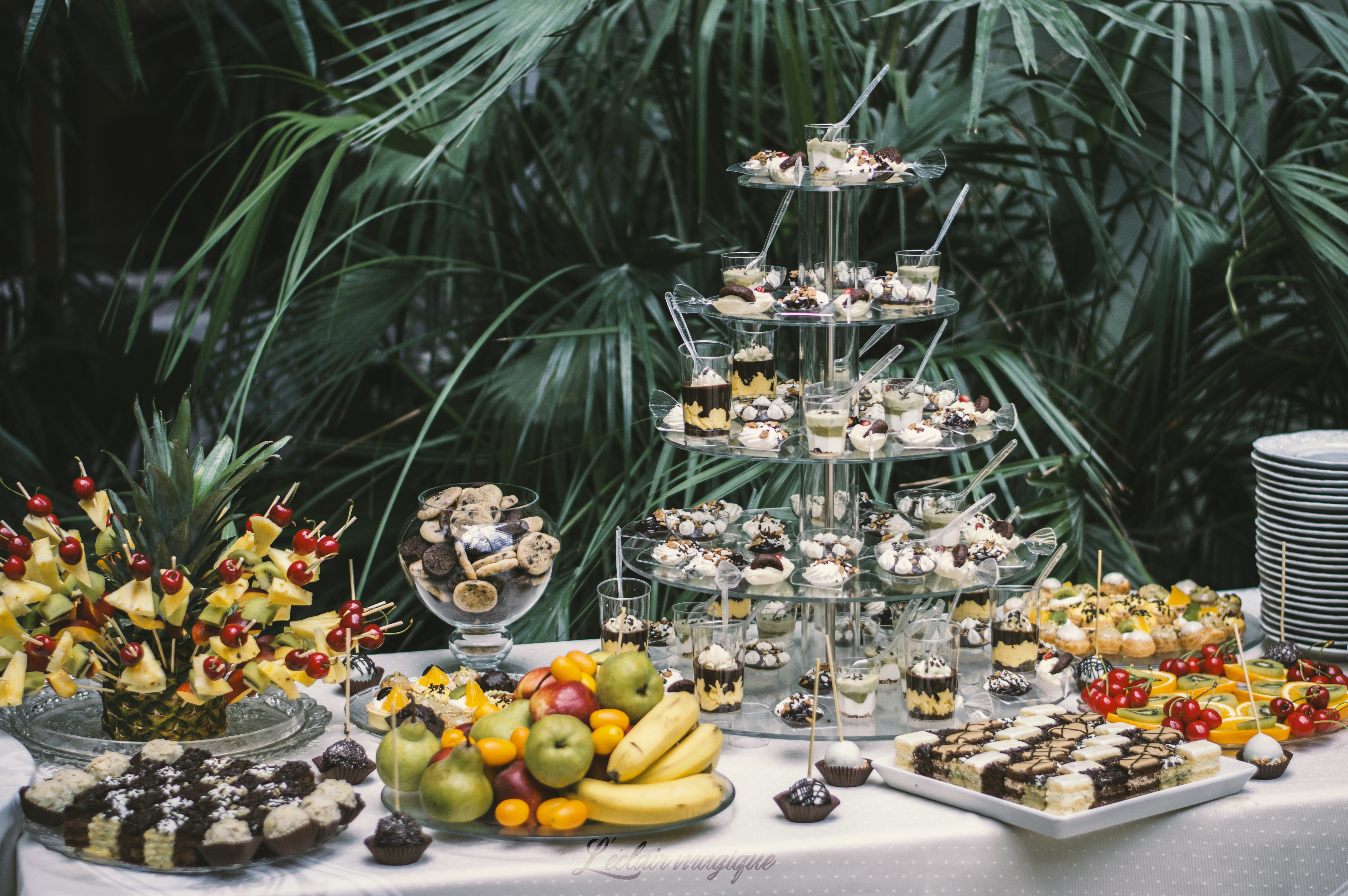 Pe lângă partea de cofetărie, L’éclair magique primeşte comenzi pentru evenimente: nunţi, botezuri sau alte tipuri de evenimente private. Oferă în acest sens torturi personalizate, candy bar-uri, dar şi mărturii, fiind deschişi oricărei sugestii din partea clienţilor. „Am avut de curând o provocare în acest sens. Am avut o mireasă care avea nunta sâmbătă, iar vinerea s-a răzgândit în privinţa tortului. Ne-am mobilizat şi am făcut în aşa fel încât mireasa să fie mulţumită. La noi, oferta e personalizată în funcţie de client. Mai mult, când avem o comandă pentru o nuntă, de exemplu, încercăm să aflăm de la miri care este meniul, astfel încât tortul să fie potrivit în cadrul evenimentului, să completeze meniul. Le oferim mirilor sfaturi în acest sens. Îi sfătuim ce arome se potrivesc şi ce arome nu fac casă bună împreună, pentru că ne dorim ca aceştia să aibă parte de un eveniment impecabil”, spun reprezentanţii eclerului magic.