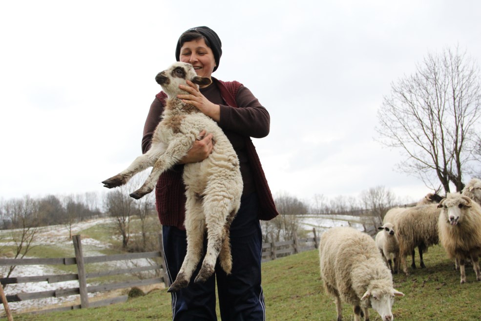 „La noi aici e foarte frumos și pădurea e aproape. Avem pădure de molid, se fac afine, zmeură, ciuperci. Vedeți acolo pământul acela? L-a cumpărat cineva de la oraș și își face casă. Este apă în tot satul, este șosea. O veni ea și căldura și va fi și mai frumos”, precizează cu speranță doamna Marcela, întreruptă de Cezar, un miel alb cu pete negre, care pare să se fi pierdut de turmă. „Hai Cezar, șu, șu, șu, șu!”, îl grăbește femeia. „Ne mai plângem că e greu, dar ți-s și dragi”, admite Marcela Peica.