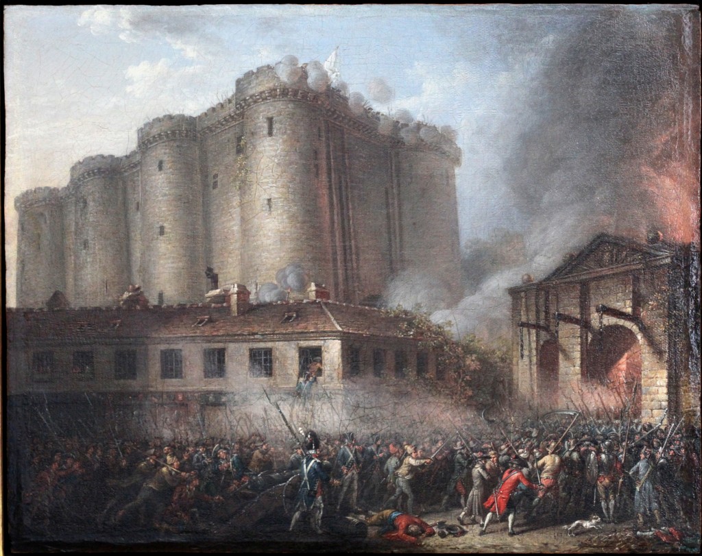Unul dintre punctele culminante ale Revoluţiei a avut loc pe 14 iulie 1789, atunci când cetăţenii din Paris au luat cu asalt şi au distrus Bastilia, închisoarea de stat care, în ochii lor, era un simbol al vechiului regim, pe care îl detestau. Acesta este considerat şi momentul începerii adevăratei revoluţii şi este aniversat ca Zi Naţională a Franţei. Trei zile mai târziu, tricolorul albastru-alb-roşu a devenit emblema Revoluţiei.