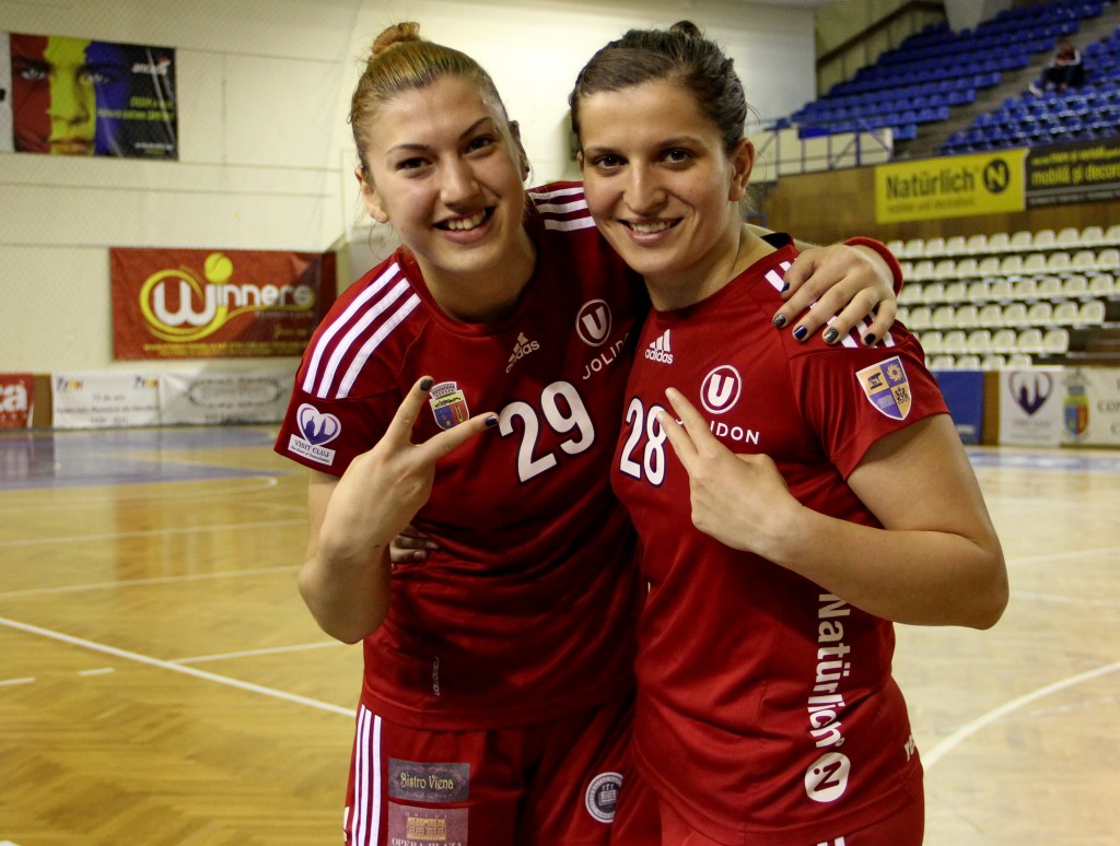 Extreme stânga: Carmen Ilie-Șelaru (SCM Craiova), Laura Leahu (Știința București)