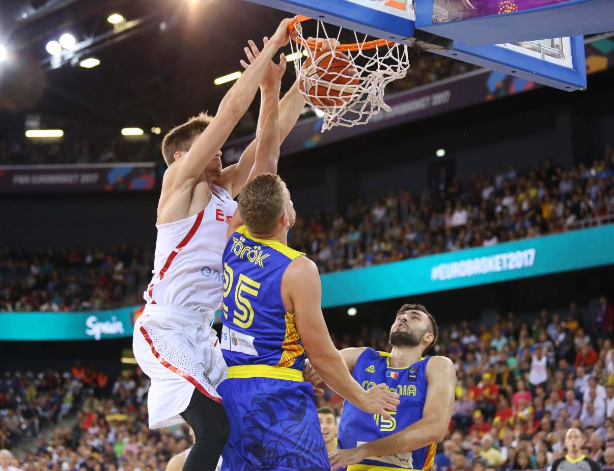 România nu a rezistat decât 15 minute în fața campioanei Europei Spania, după care meciul s-a transformat într-o ploaie de puncte marcate de vedetele ibericilor, care au câștigat 91-50 pentru a treia victorie consecutivă din grupă. În primul meci al zilei, Ungaria a câștigat entuziasmant cu Cehia, în timp ce Croația a învins Muntenegru la capătul unui meci decis pe final.
